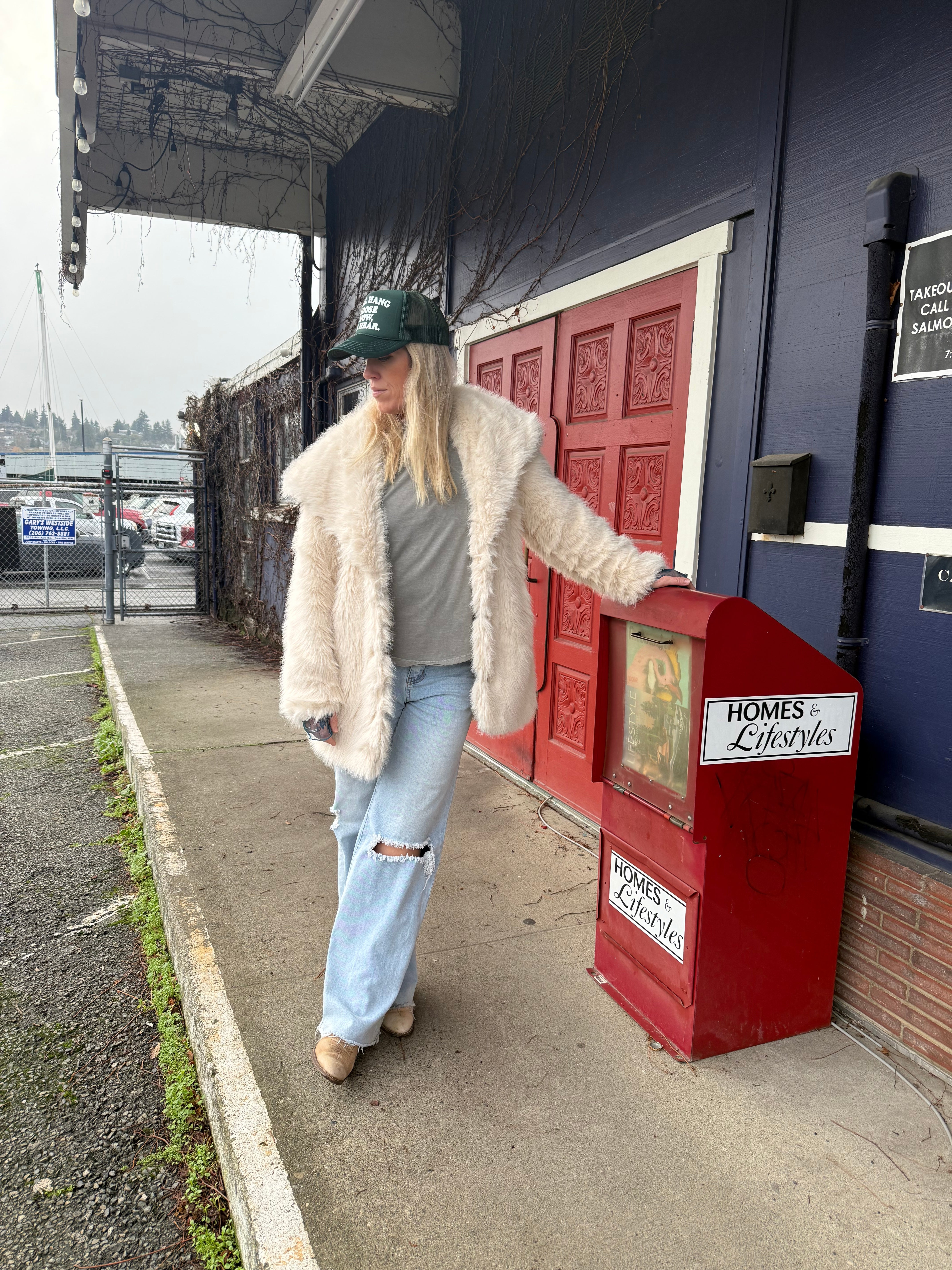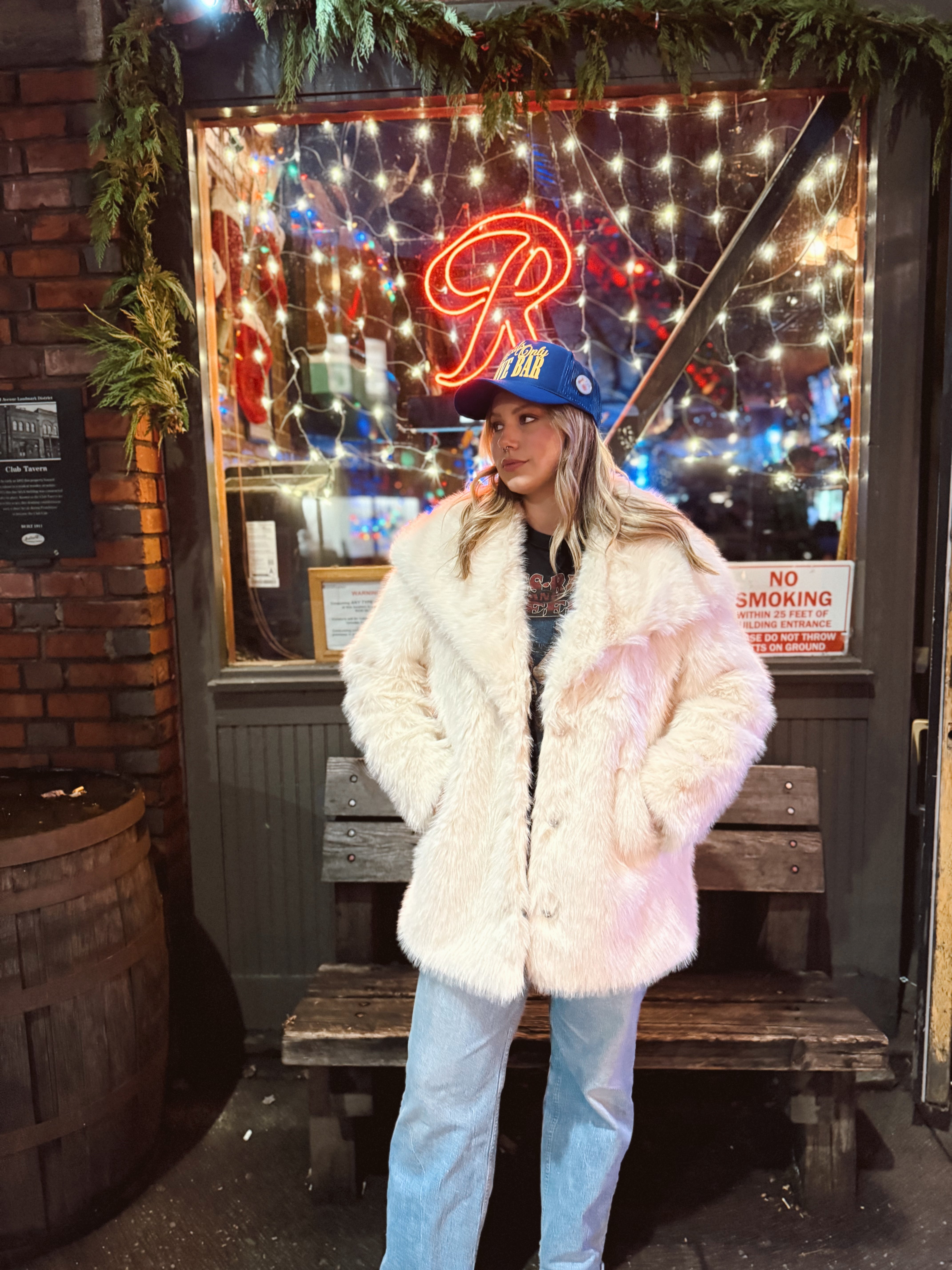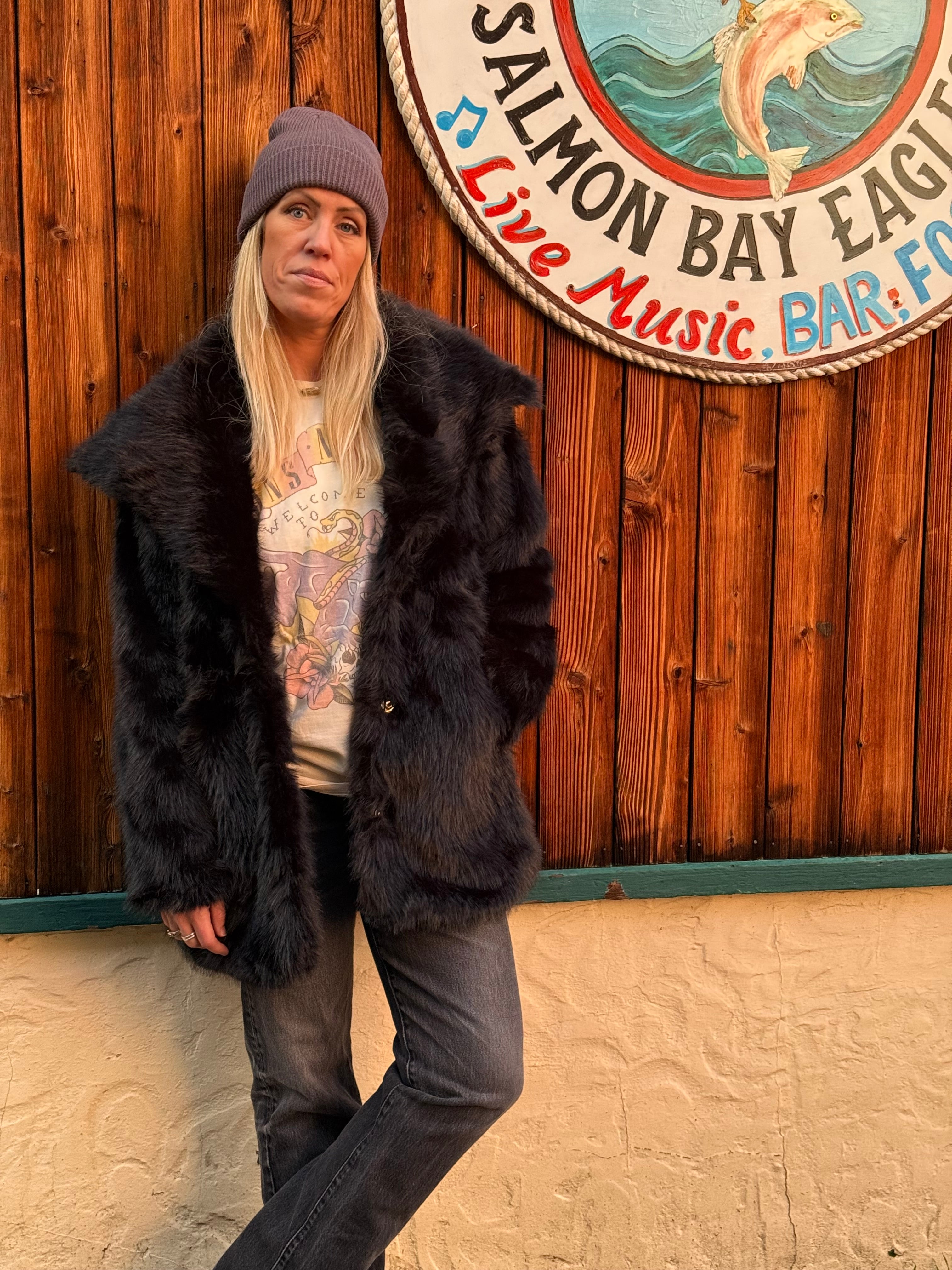 Our After Midnight faux fur jacket is the perfect faux fur! She comes in two colors a deep black and a beautiful cream! With a slightly oversized fit! The perfect neutral colors to match your style! The softest faux fur! Satin lined! With pockets big enough to fit your phone, lipgloss, and wallet! Comfy and edgy. Your new favorite faux fur!
