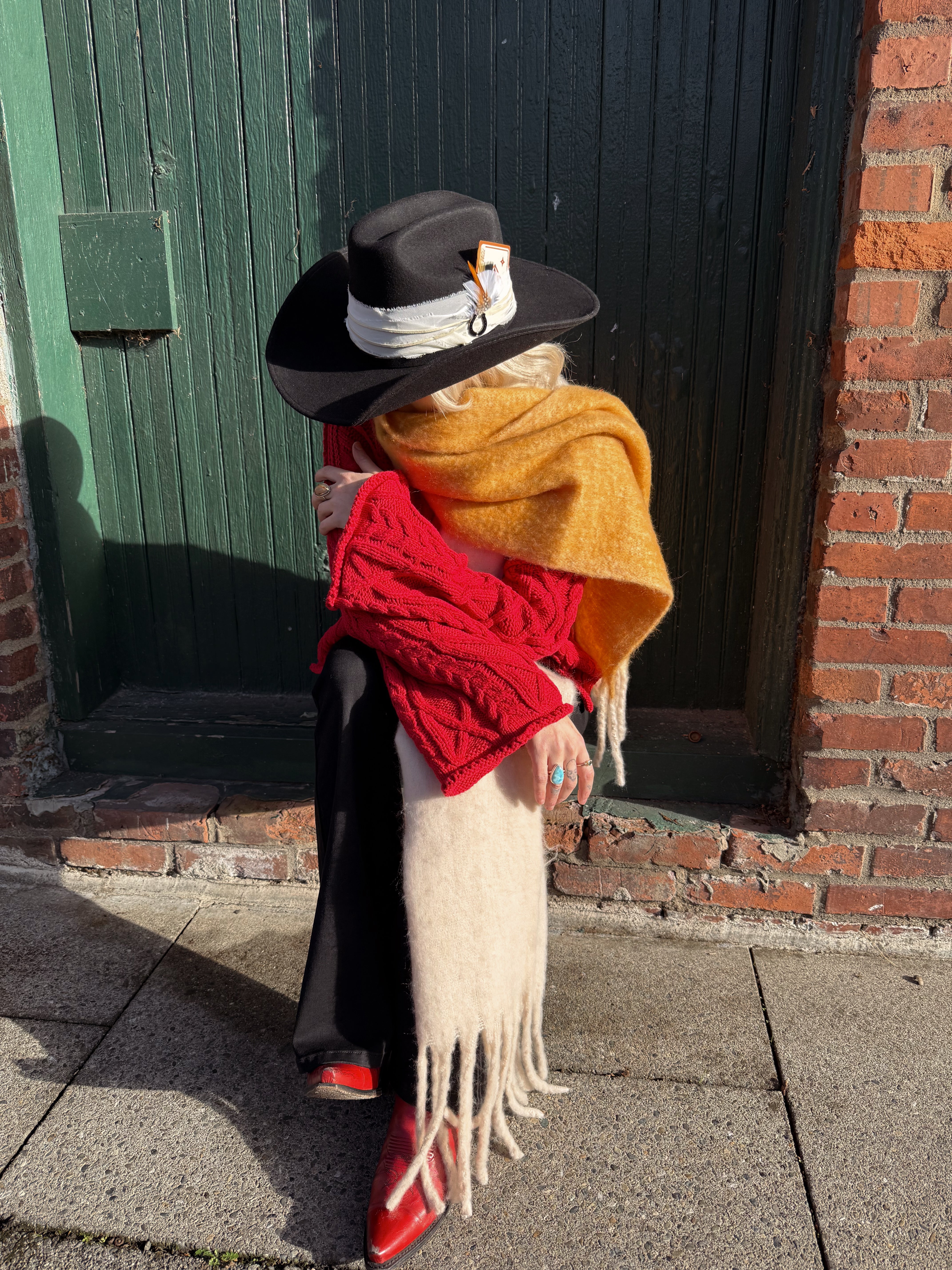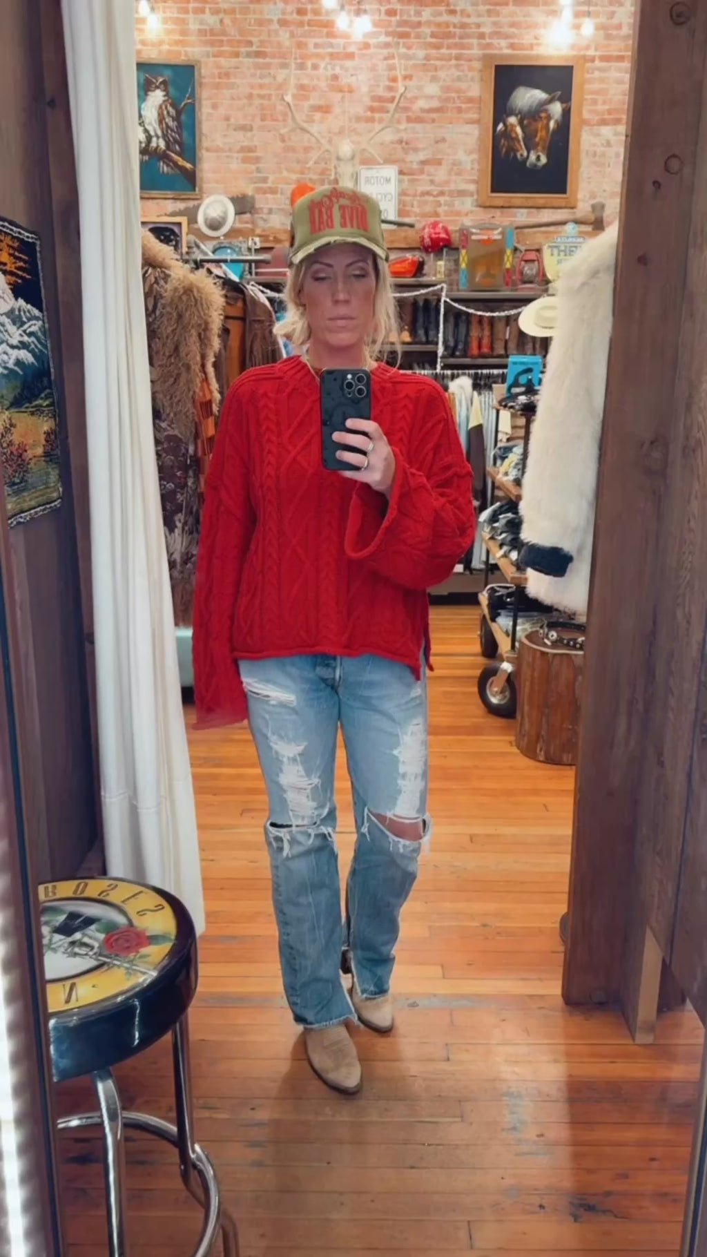Sassy and classy. Cozy up with the sophisticated Oversized Cable Knit Sweater for women. Wear with any style of pants or women's skirts and pair of classic women's vintage boots.