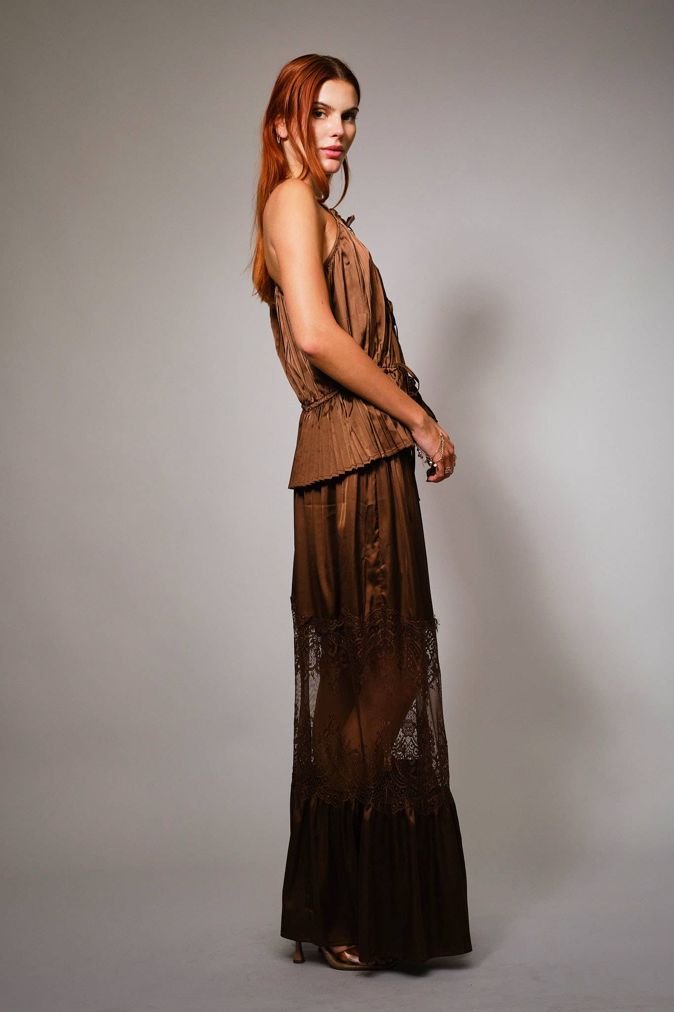 Our Midnight lace maxi skirt blends sweet lace with a satin edge. Designed with a soft elastic waist and cut off slip, this is a head turner. Layer with your favorite band tee and leather jacket, or dress it up for a night out.