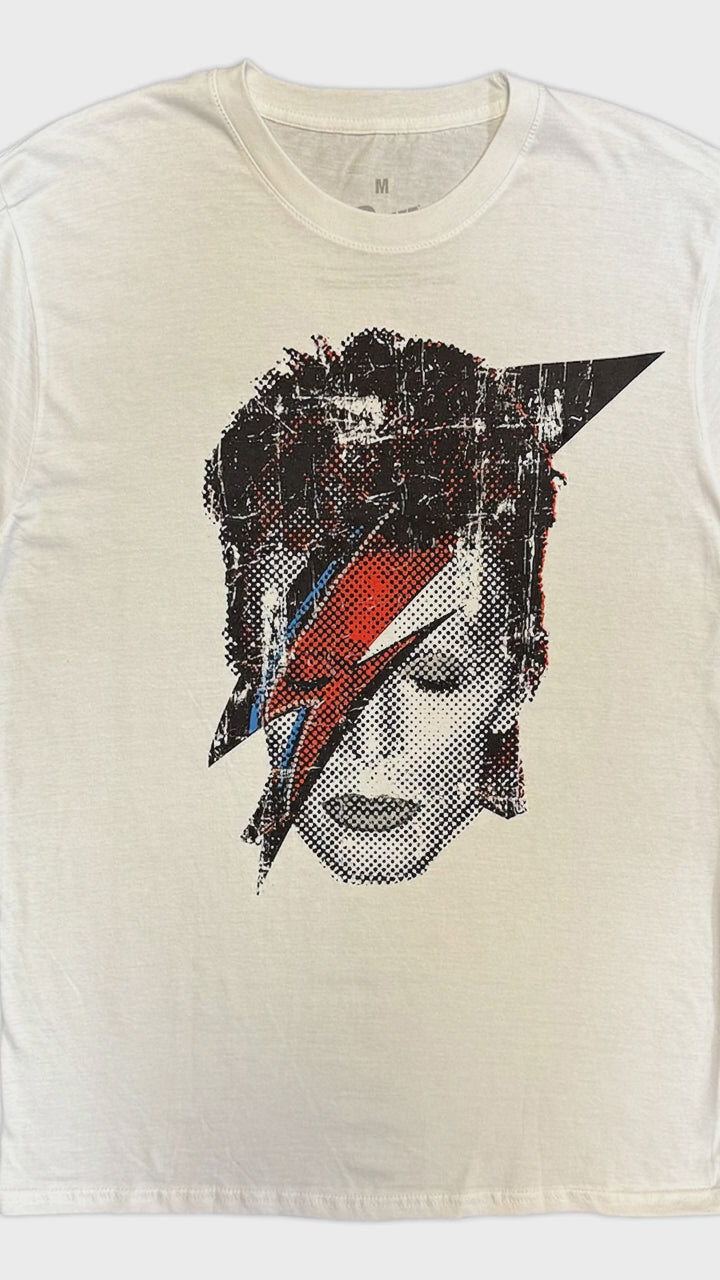 Our David Bowie Aladdin Sane Rock Shirt is a tribute to David Bowie's groundbreaking Aladdin Sane era, the album that defined glam rock's wild, electric edge. Released in 1973, Aladdin Sane captured Bowie's fearless creativity and the clash between fame, fashion, and sound- symbolized by the iconic lightning bolt artwork. This class rock shirt is as timeless as this album.