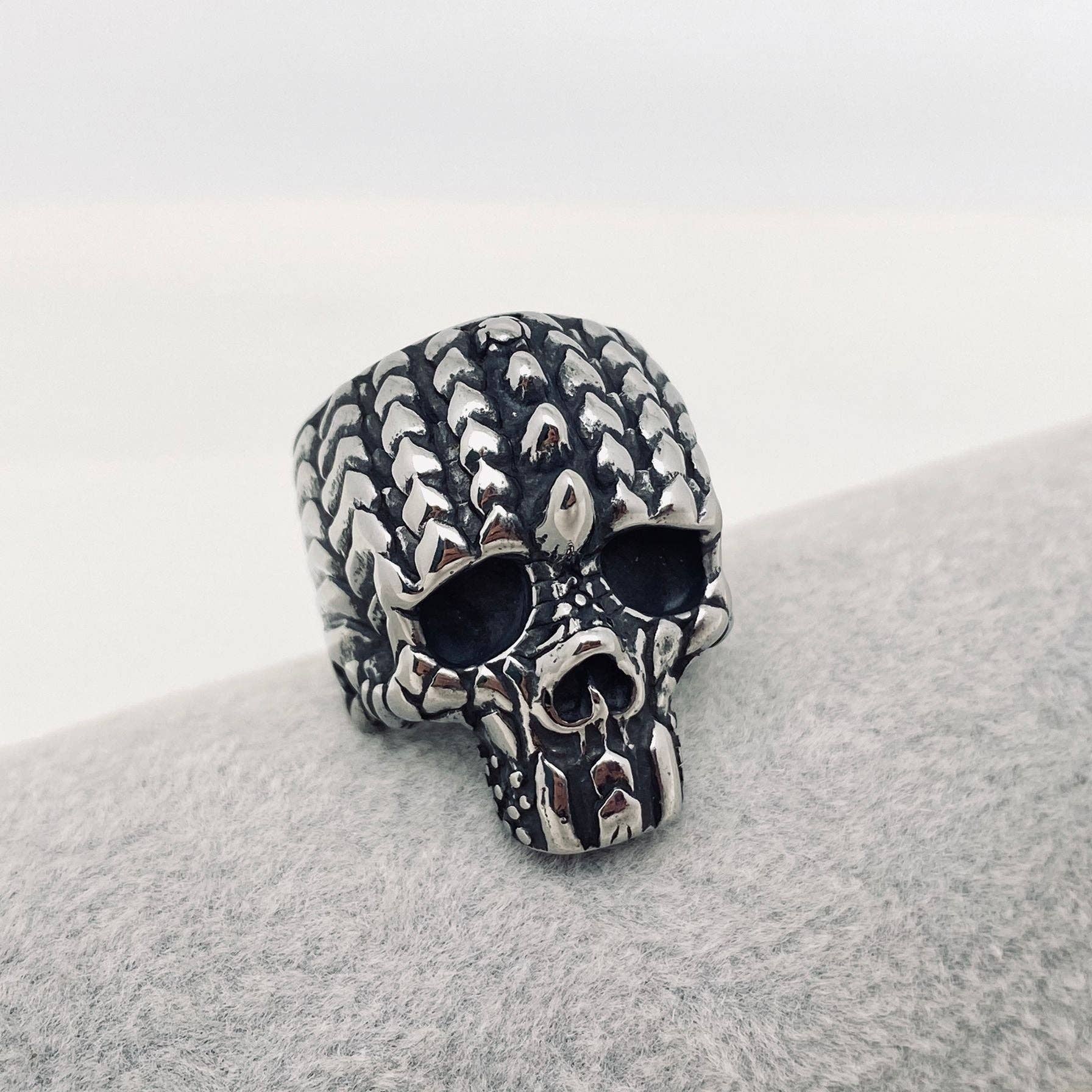 A classic biker ring for your collection. Our Nightrider Skull ring was created out of stainless steel. This piece will ride hard. Wear everyday or pull out for special occasions.
