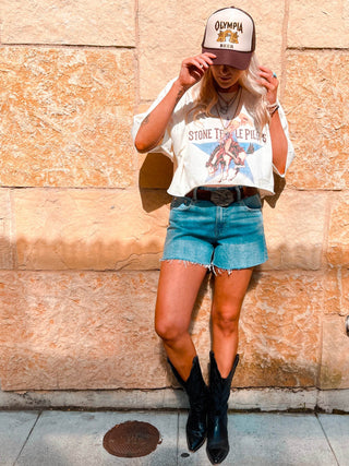 Our Chop Shop features one of a kind distressed, bleached, and dyed products done by one of our very own team members. See something on our site you would like personalized? Shoot us an email or Instagram DM and we will make it happen! *Additional fees may apply