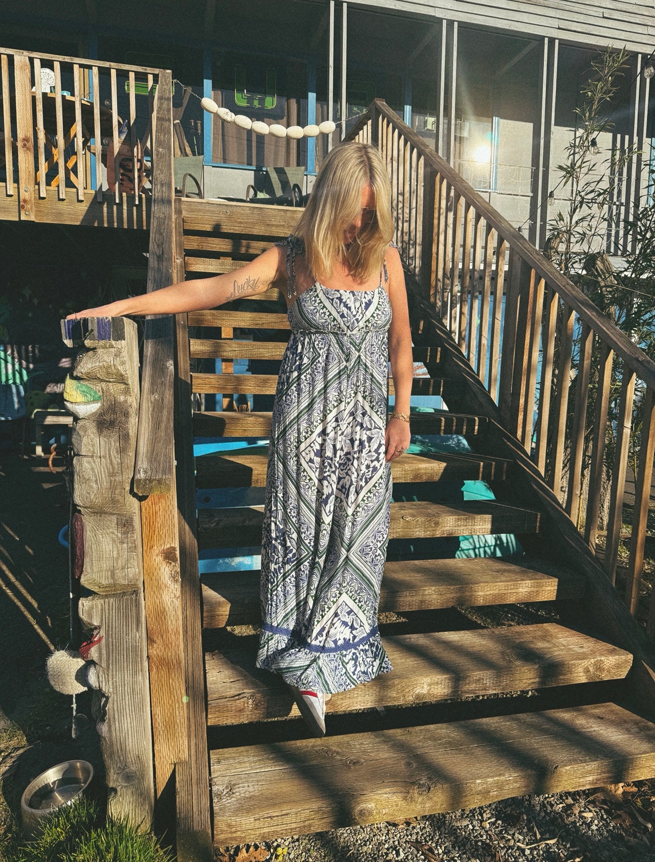 Easy, breezy, and made for sun-soaked days, the Desert Mosaic wide leg jumpsuit brings effortless boho charm with a western-wanderer spirit. Featuring a lightweight flowy silhouette, delicate straps, and an intricate blue-and-green mosaic print, this jumpsuit moves beautifully with every step. The relaxed empire waist creates a flattering shape while keeping it comfortable enough for warm days, travel, markets, or patio nights.