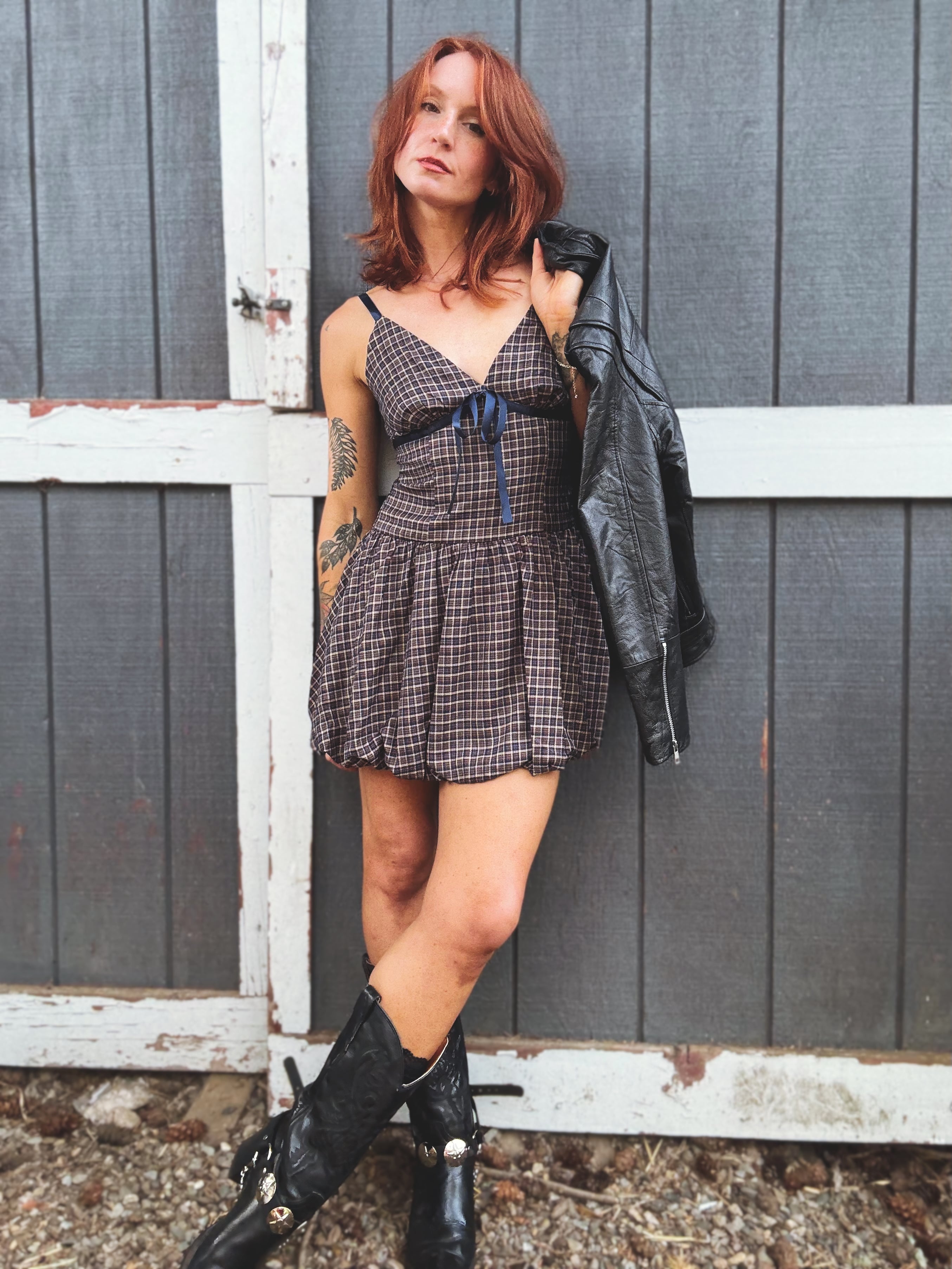 The Good Time Flannel Dress is where cozy meets carefree. Made in a soft navy-and-tan plaid, it features a flattering V-neckline, delicate ribbon tie detail, and an easy-fit silhouette that flows into a playful, gathered skirt. Whether you’re headed to a country concert, a fall bonfire, or just kicking back with friends, this dress brings a laid-back charm with a touch of flirt. Pair it with boots and a denim jacket for the ultimate Western-inspired look.