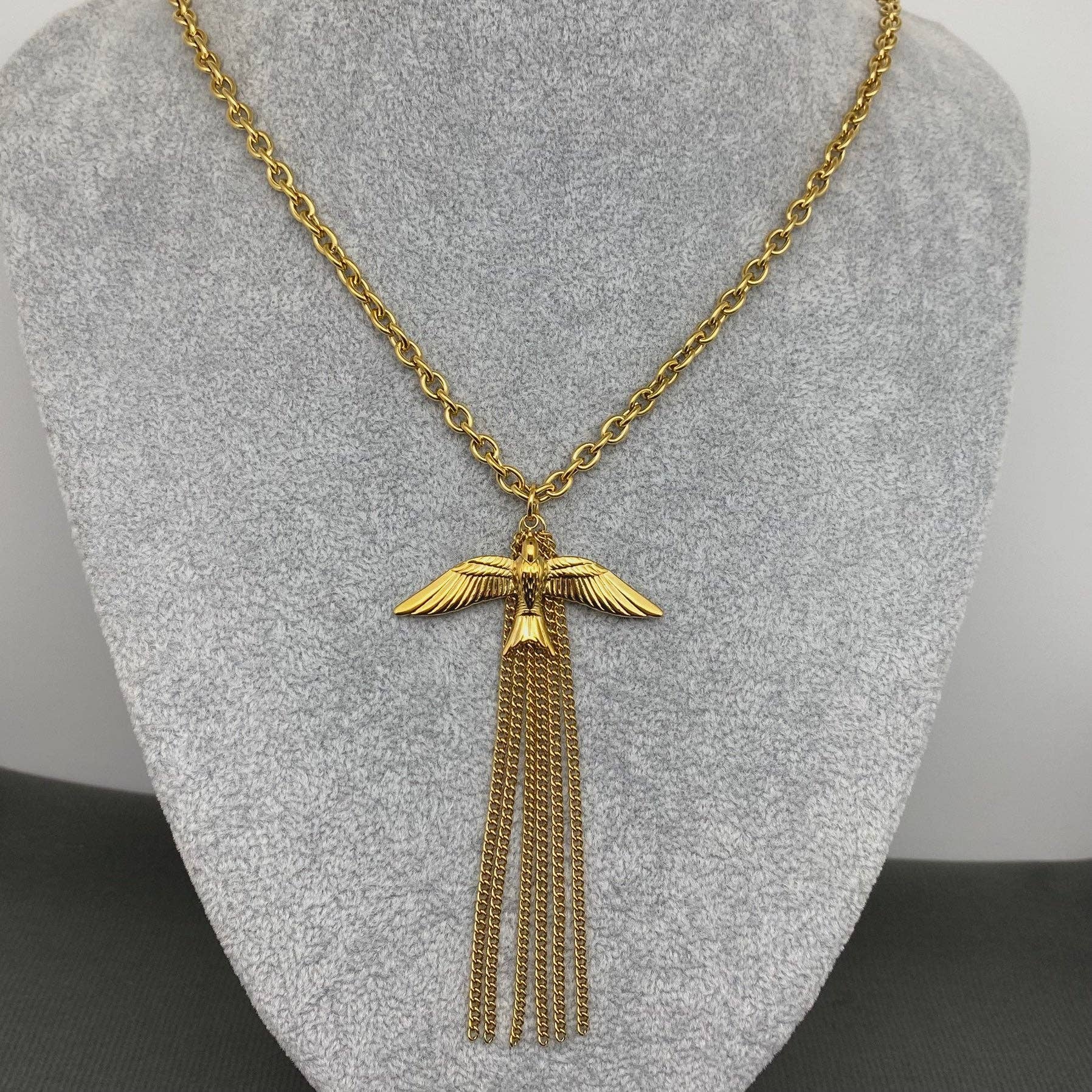 • Gold bird and chain necklace