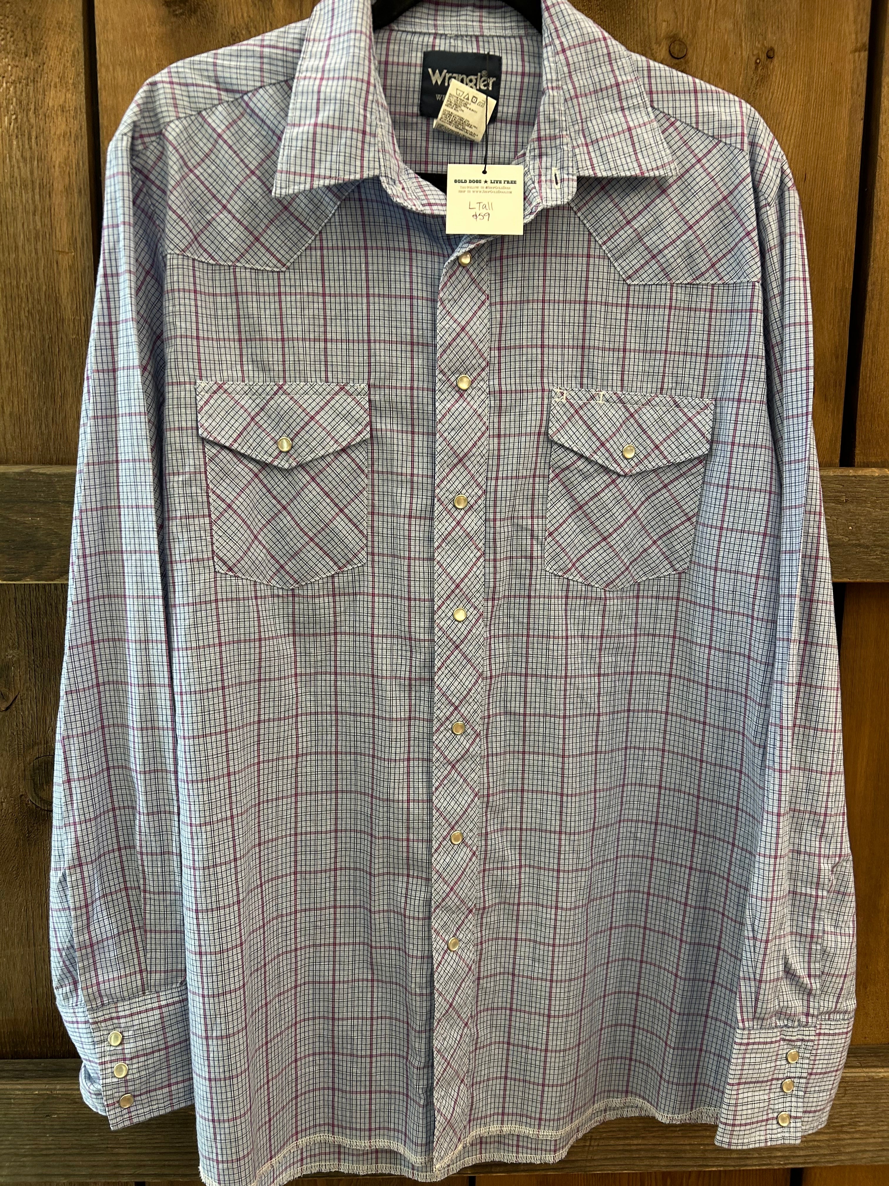 L Tall Vintage Wrangler Snap Up. Hard to find Vintage Western Snap Up with authentic wear and tear. Wrangler gets better with time.