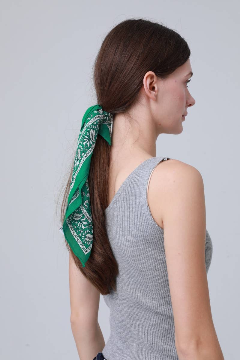 One scarf, endless styles! This vibrant square bandana ties as a headwrap, neck scarf, or purse accent. Lightweight fabric perfect for adding flair to casual or boho looks.