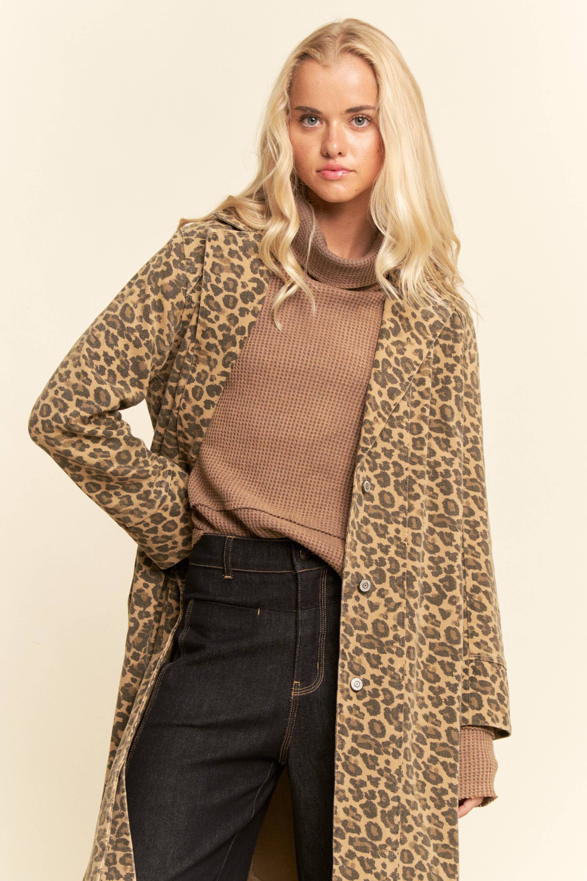 Elevate your outerwear with this leopard print longline coat, blending timeless sophistication with modern edge. Featuring a relaxed silhouette, classic lapel, and versatile layering potential, it’s perfect for to add a Little Rock n roll to your wardrobe.