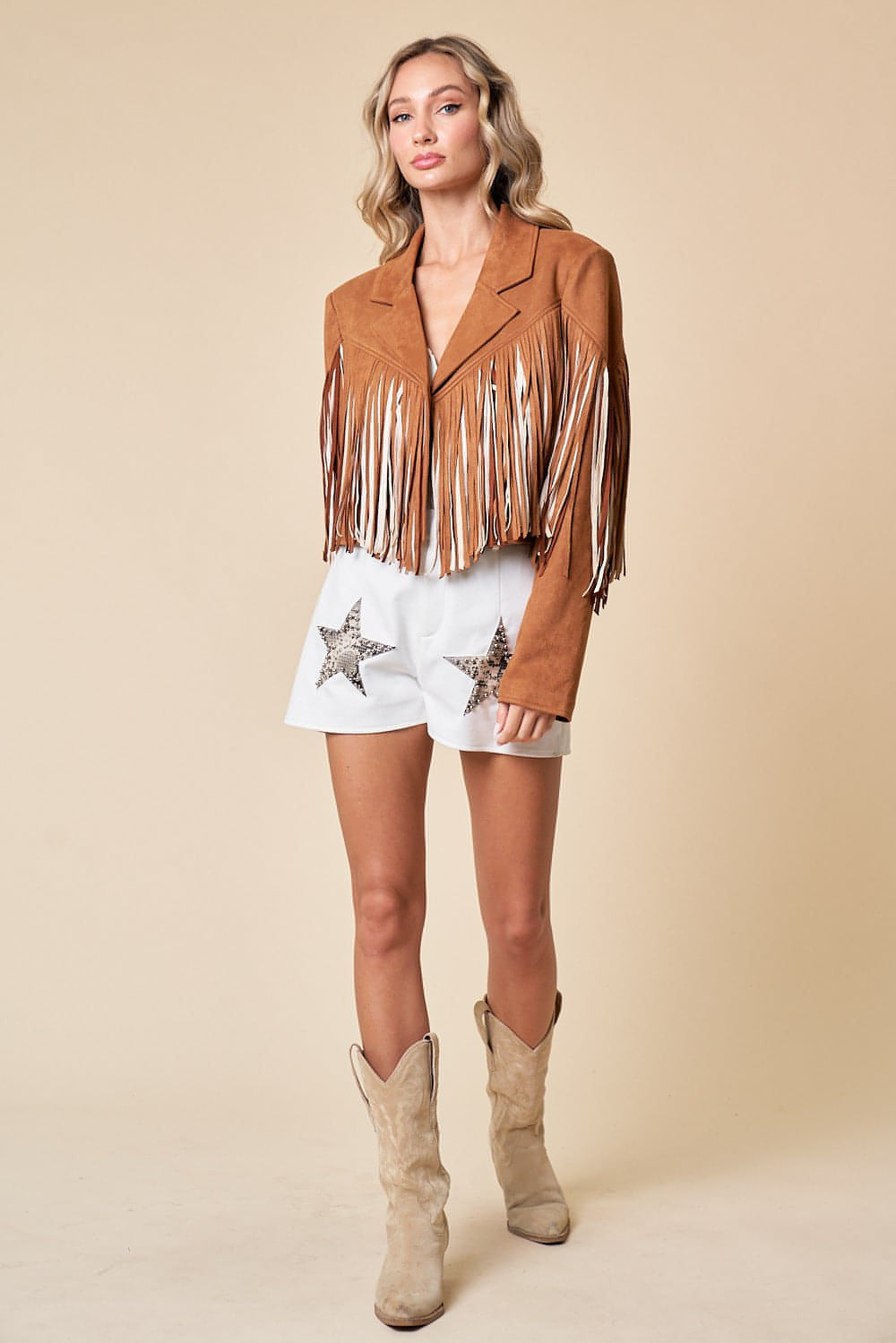 This Faux Suede Fringe Jacket is for your everyday and your special days, with multi colored fringe there is added dimension, making every move eye catching. Sitting just at the waistline this is the dream pairing for denim, or denim shorts!