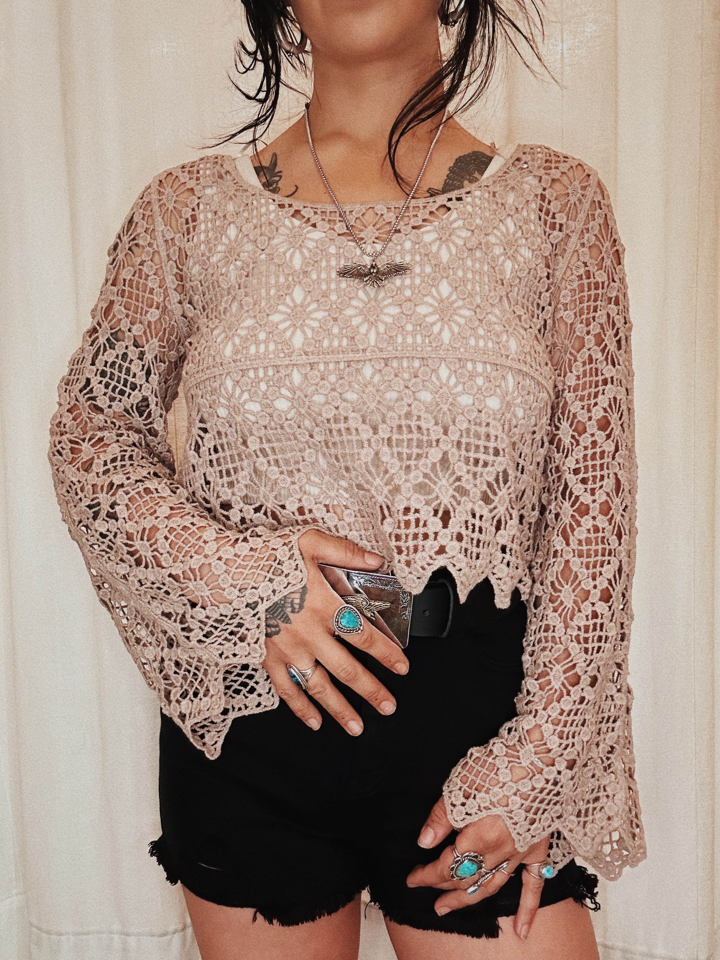 Get ready to turn heads in our Sure Thing Crochet Pullover! This sheer crochet boat neck pullover will make you feel effortlessly elegant with its bell sleeves. Perfect for any occasion, this pullover will be a staple in your wardrobe.
