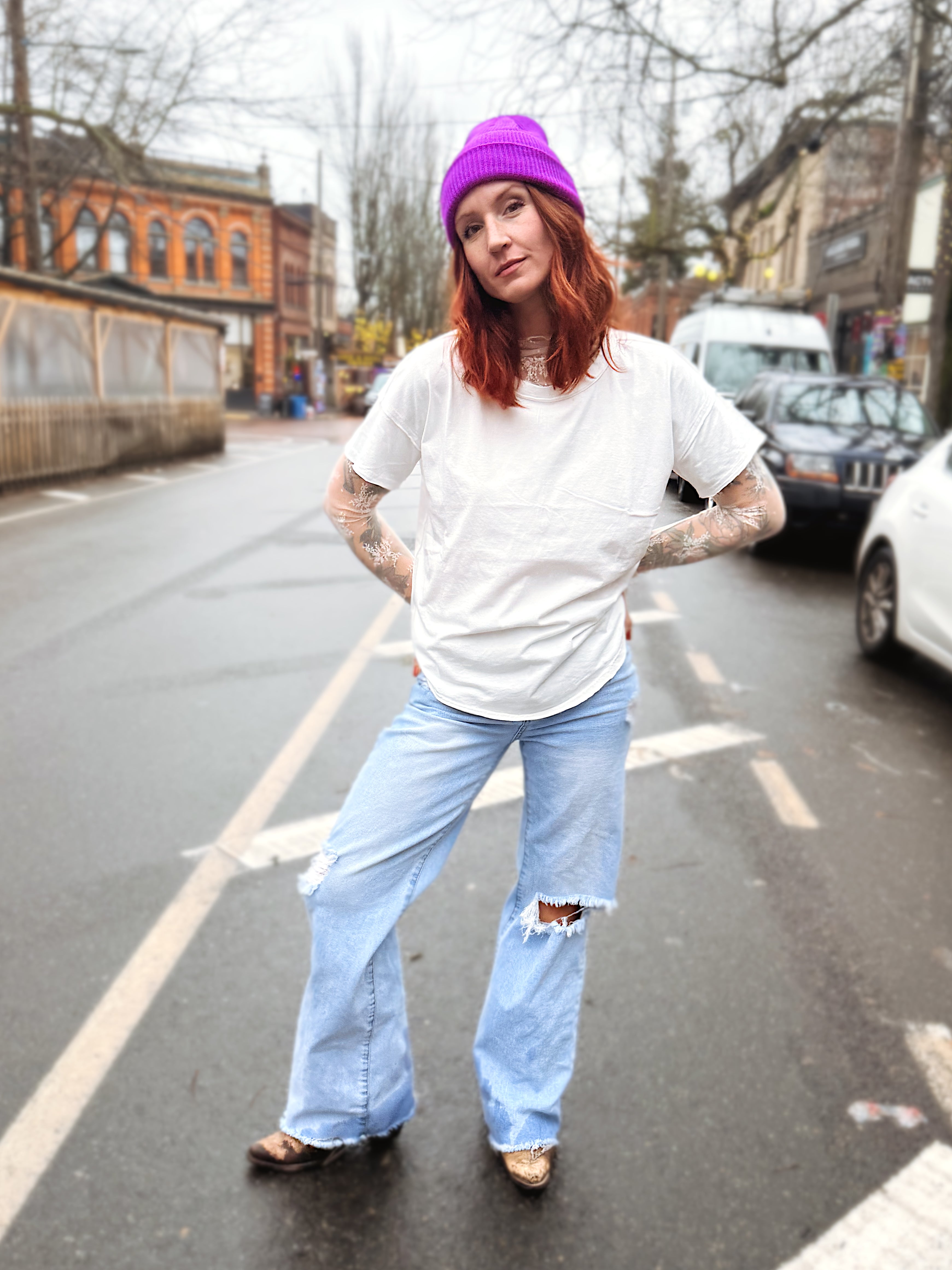 The t-shirt. Was The Line is the one, with an inside out stitched back tag; and a rounded hem this is elevated and classic. We all need one, grab this classic tee. 100% cotton.
