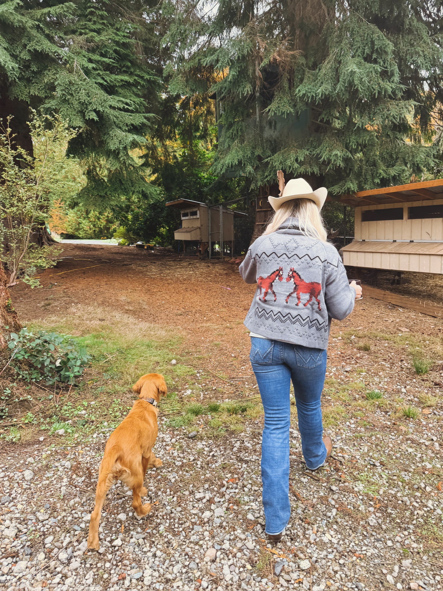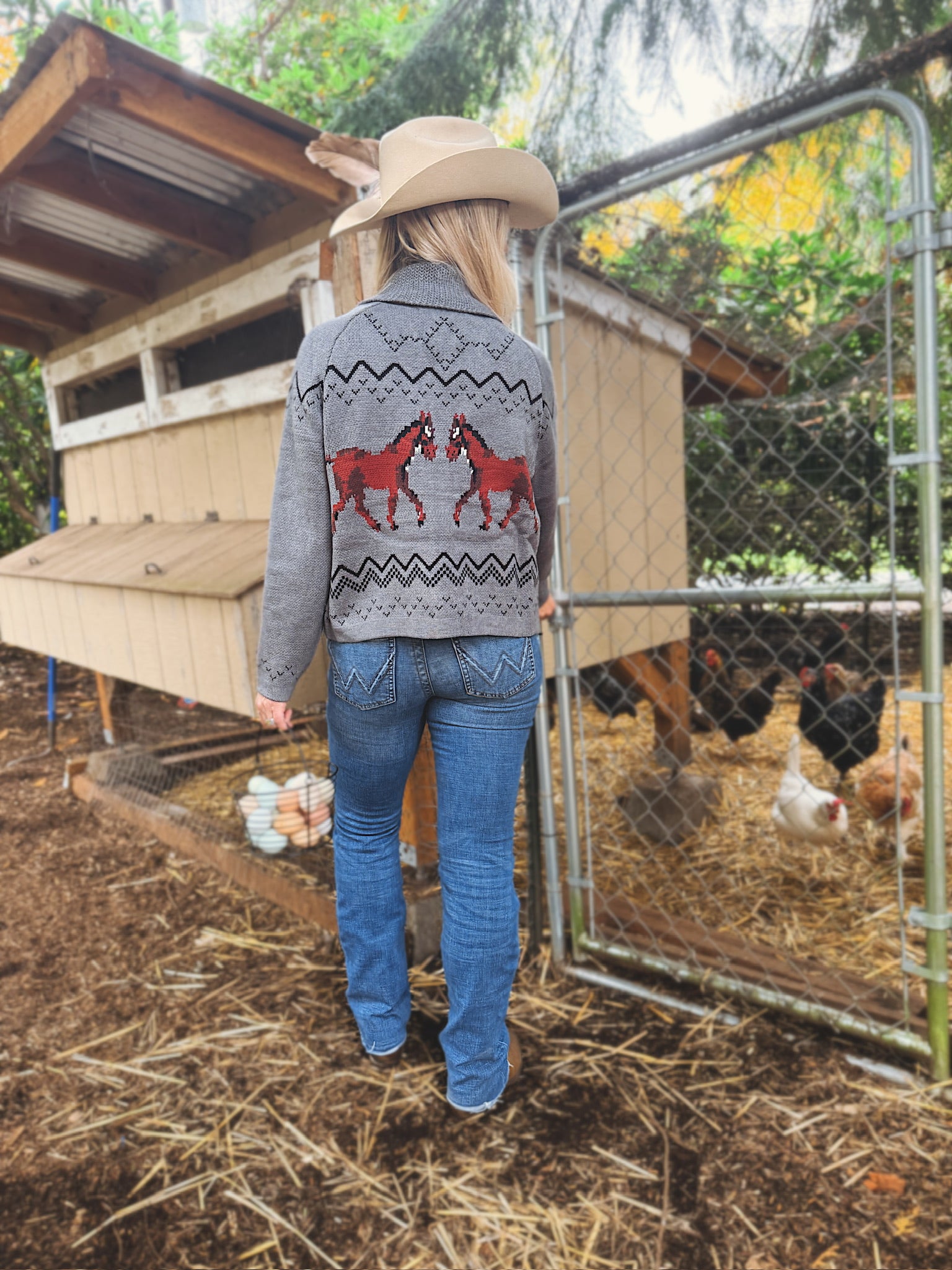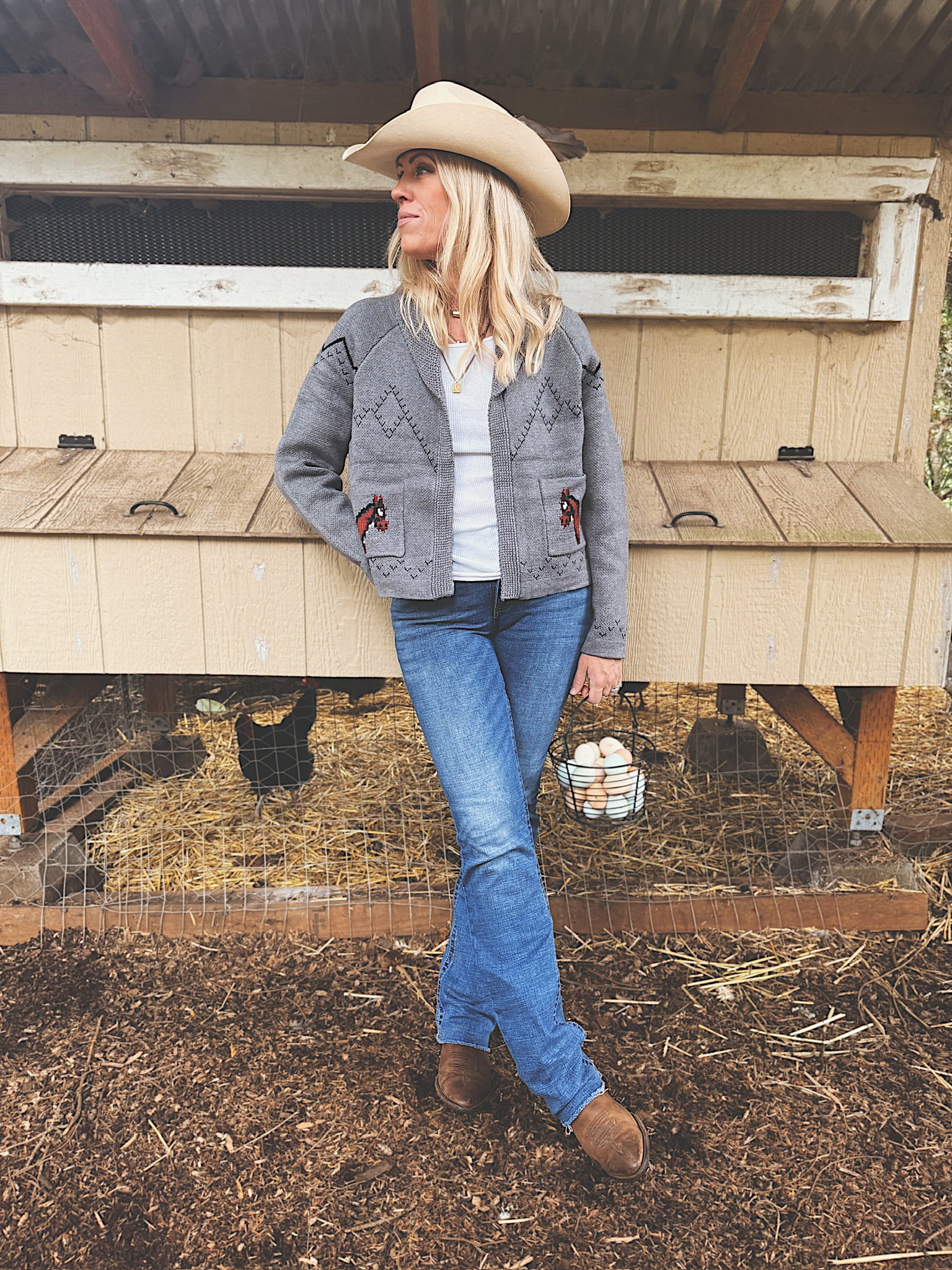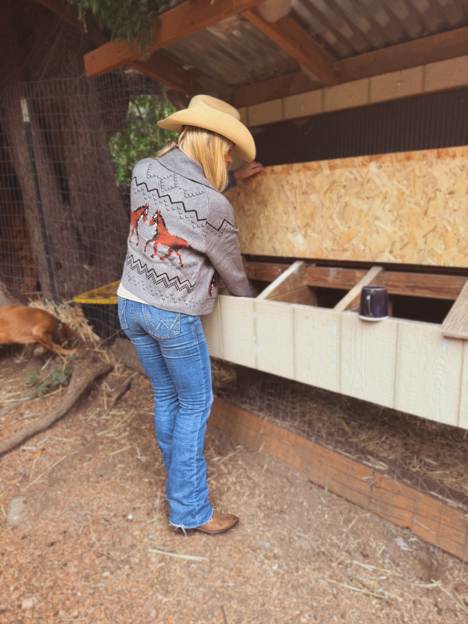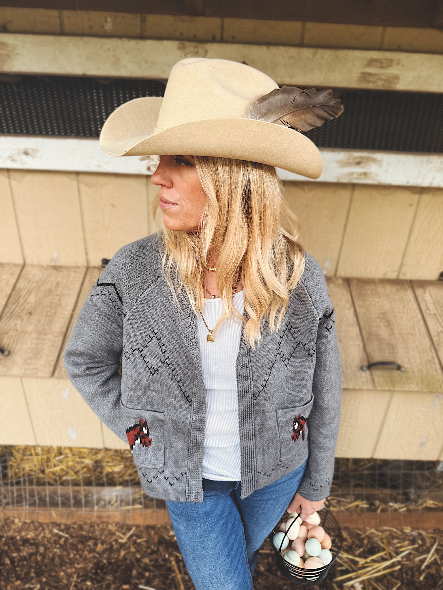 Our Show Pony Cardigan is the perfect addition to your fall/winter wardrobe. With fully functioning pockets, and an open front this is an easy throw on.