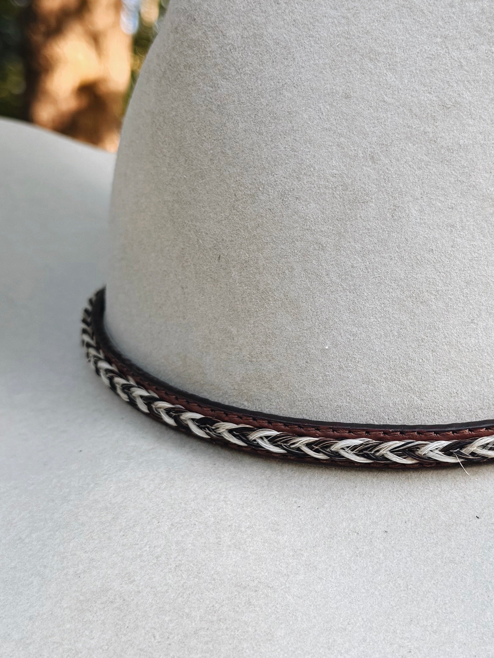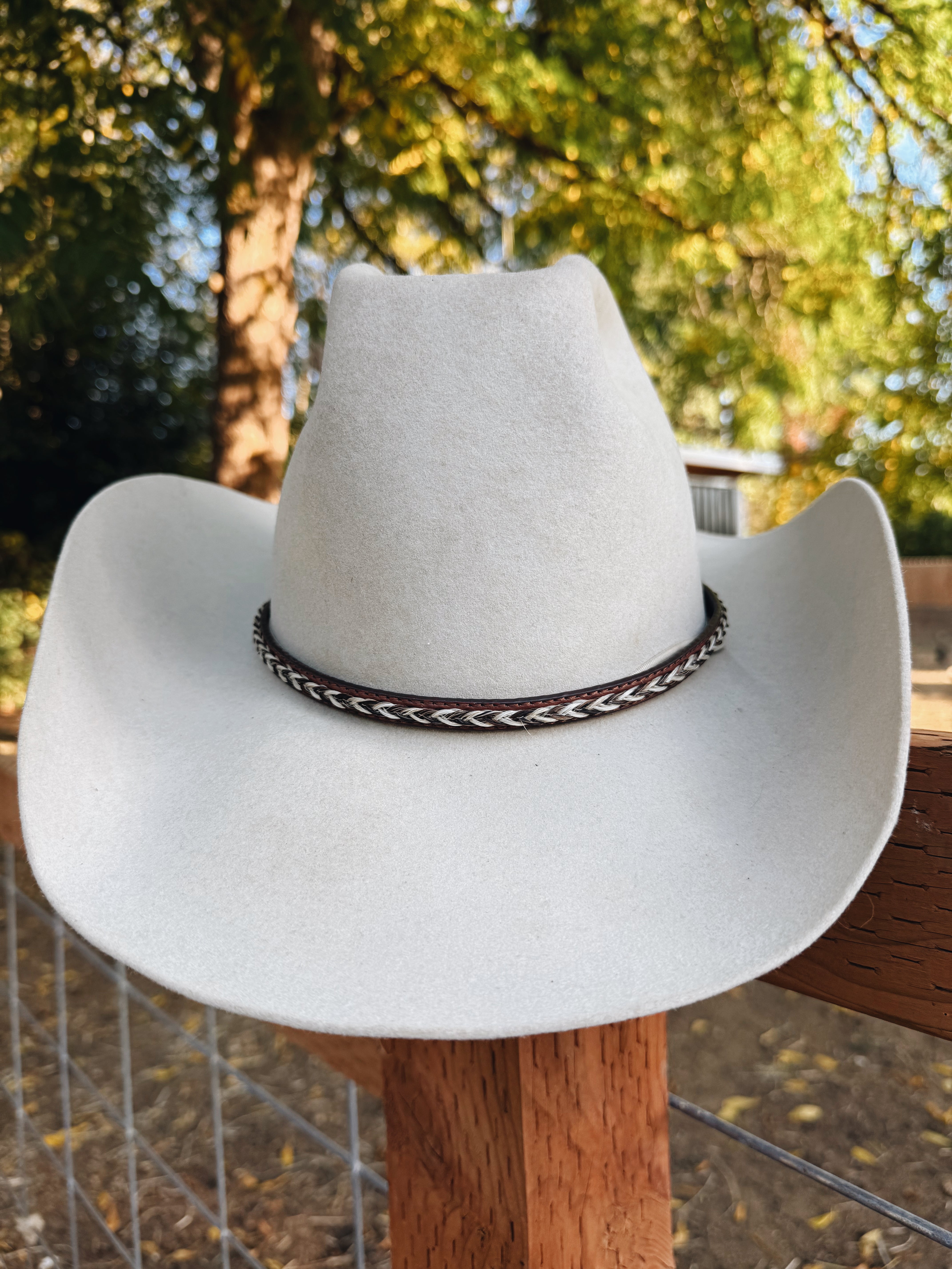 Create your own personalized style with this braided horsehair hatband by M&F Western Products. This unique hatband will certainly give you a ton of western flare. This hatband uses a belt style adjustment with a silver buckle.
