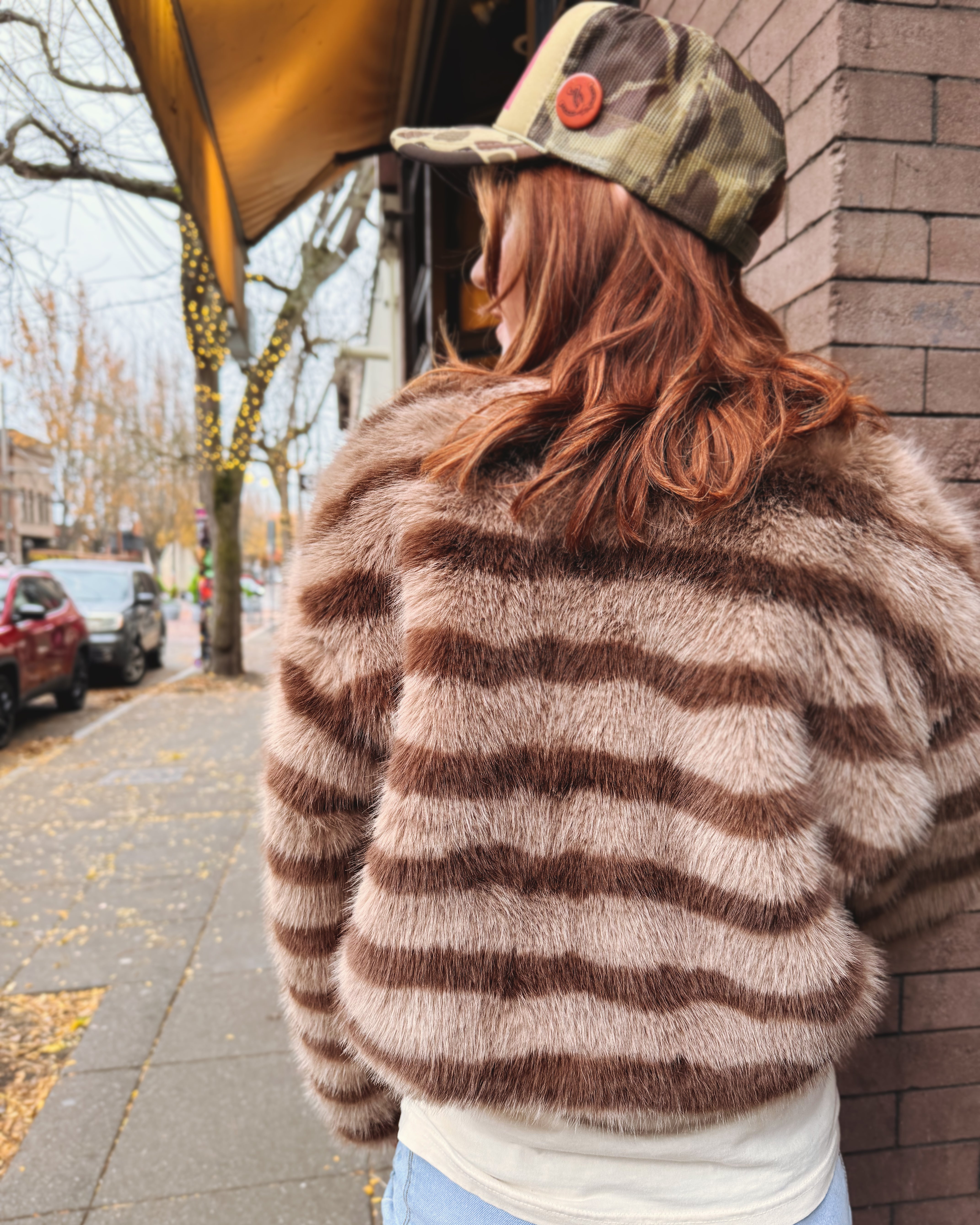 Foxy Lady is the jacket for your winter wardrobe. This elevated over piece will add to any look. Pair with baggy jeans and a trucker hat, or a dress and boots.