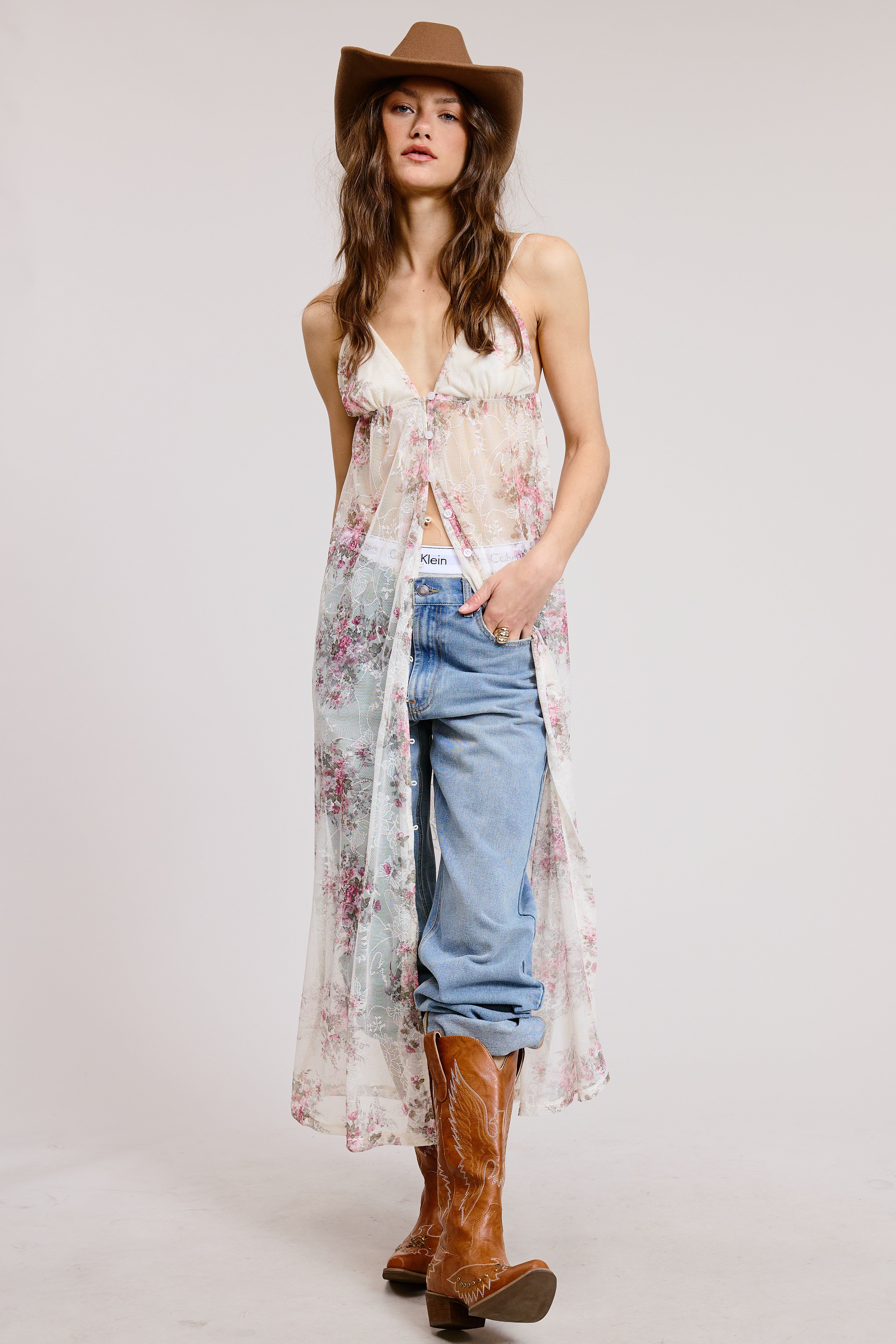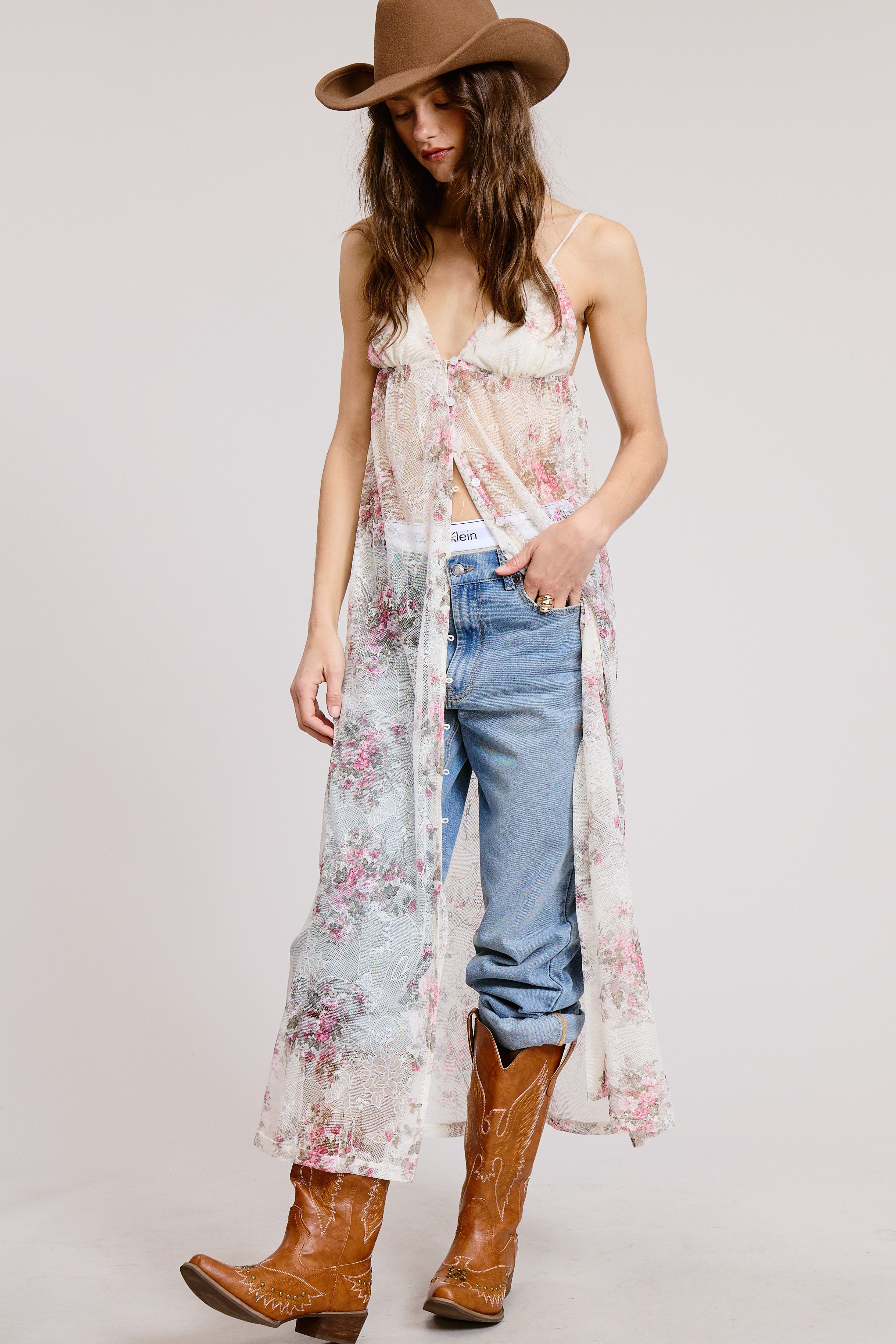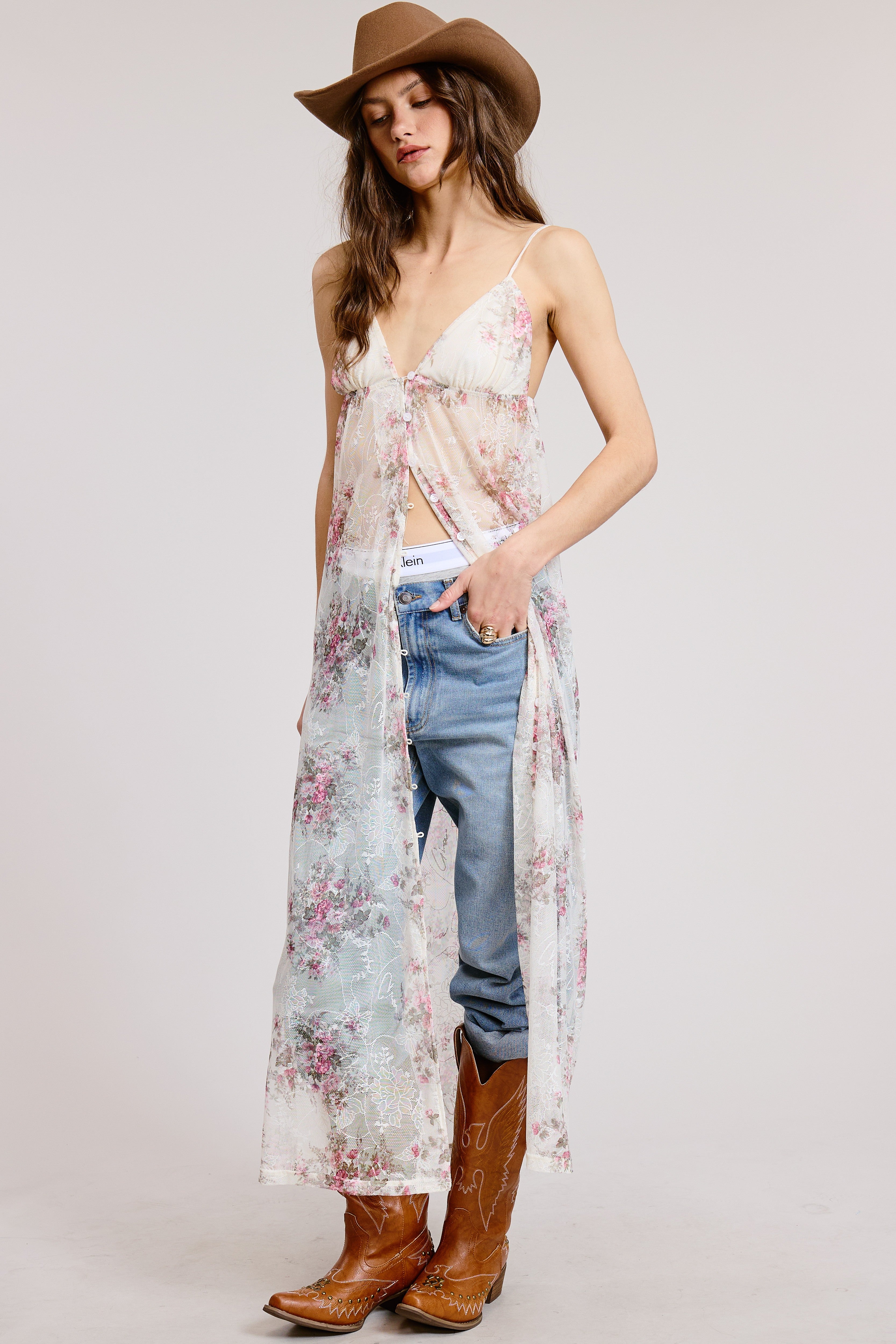 Our Busy Doin Nothin Maxi Vest is the perfect solo piece; or cover up. With a bralette top, and buttons down the front this can be worn in so many ways. Pair with black shorts and a pair of cowboy boots and you're set!