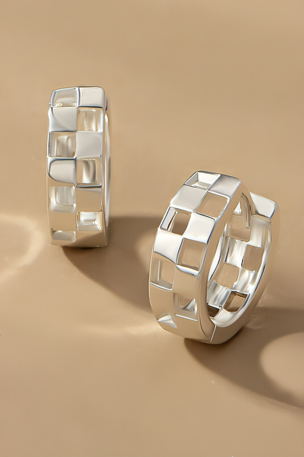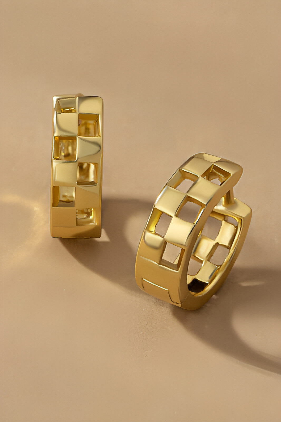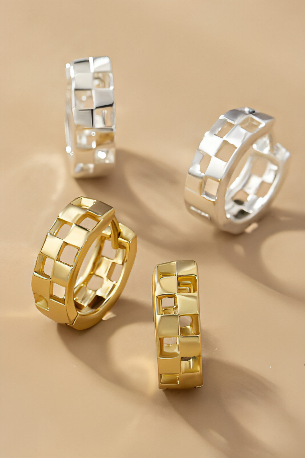 Add to your staple earring collection with these Checkered Brass Huggie Hoops that are comfortable and versatile.
