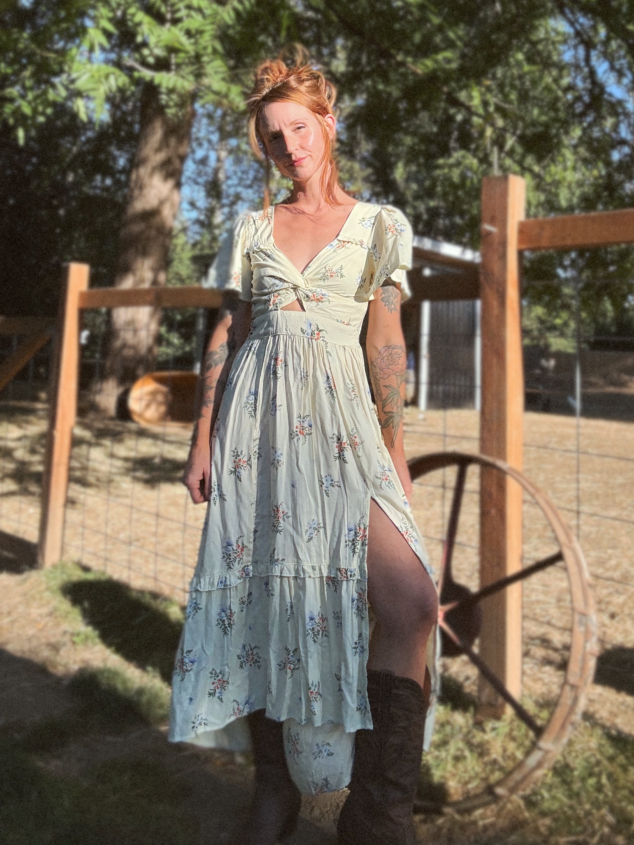 This adorable floral print cut-out twist sun dress is ideal for any event.