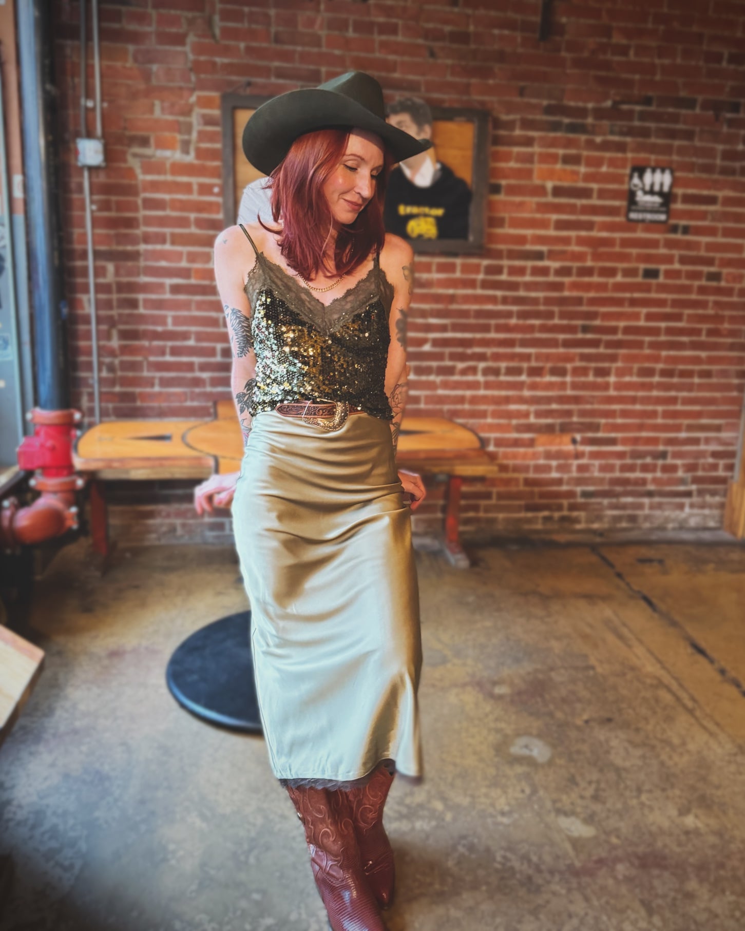 Date night vibe alert! Dream on satin midi skirt is that exactly—a total dream. This romantic satin women's skirt has a hint of black lace trimmed hem and is effortless and glamorous. Pair with boots and your favorite faux fur.