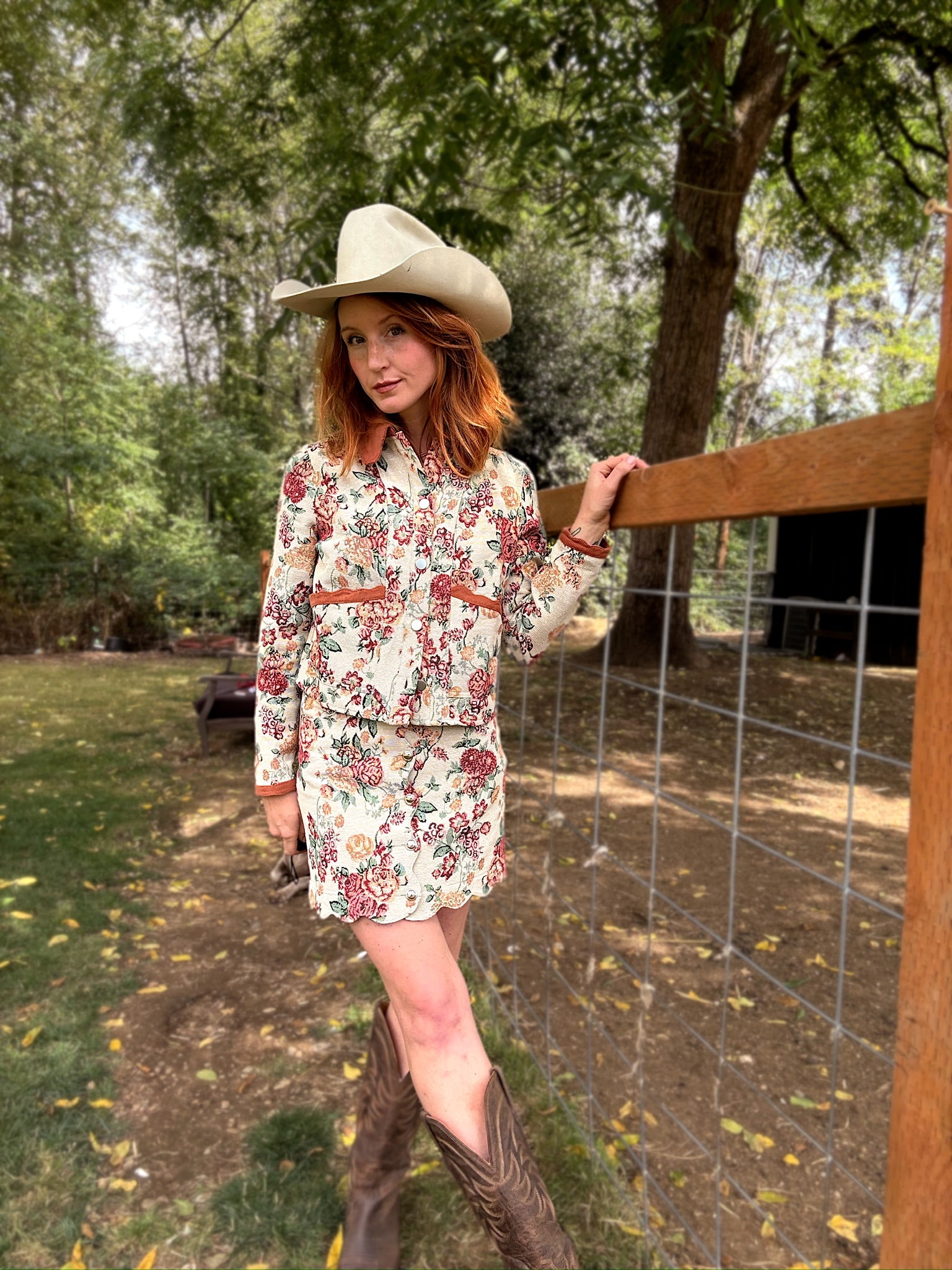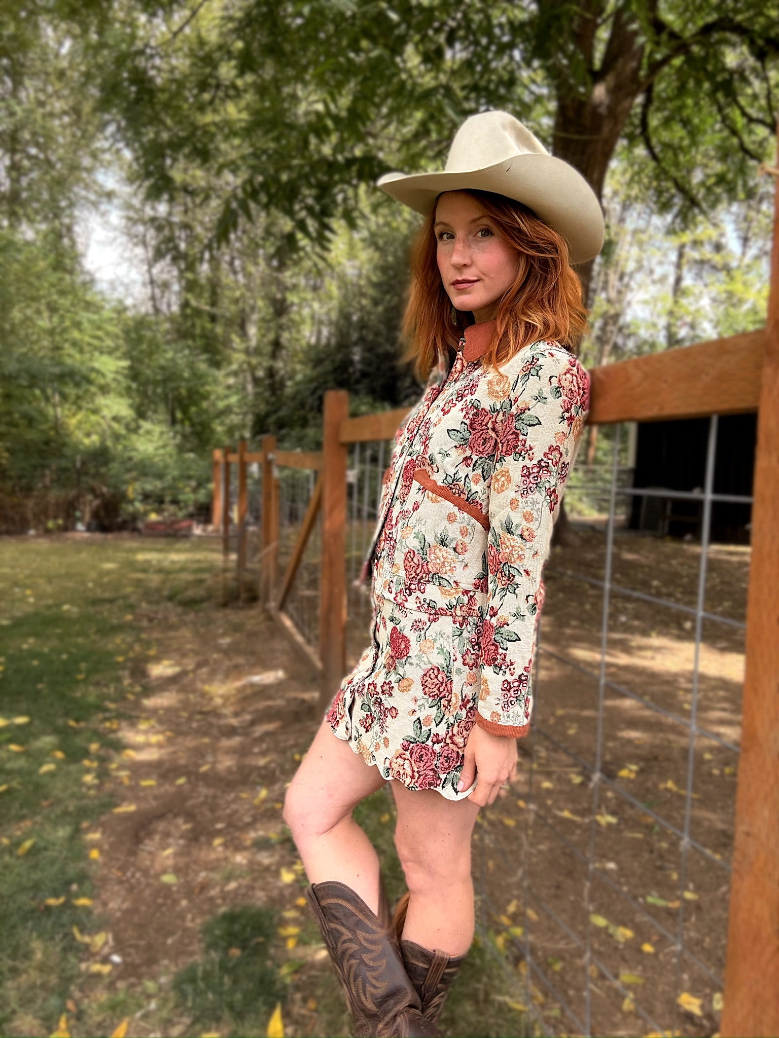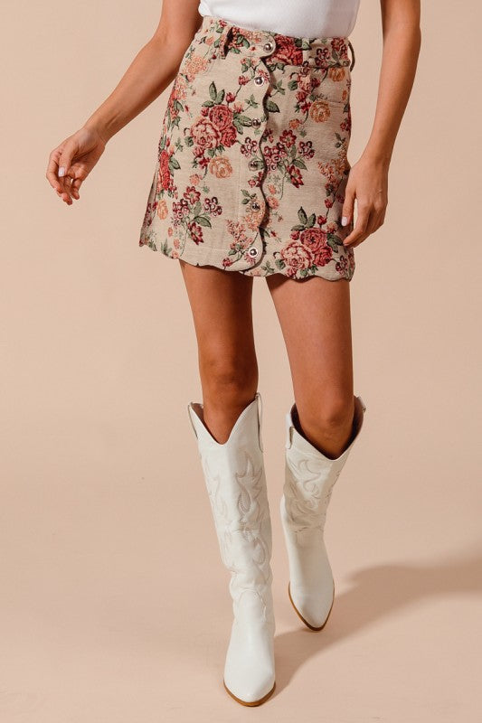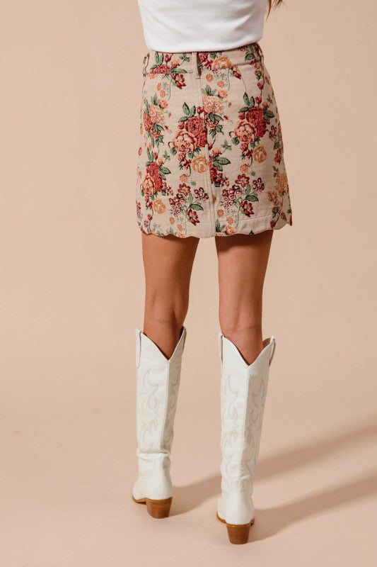 Stand out in the crowd with the Letting Me Down Jacquard Tapestry Mini Skirt, designed to turn heads. This bold piece features intricate jacquard detailing that adds texture and depth, while its mini length boldly showcases your confidence. Pair it with the matching jacket for an unforgettable look that commands attention at every step. Perfect for those who aren't afraid to stand out and own their unique style.