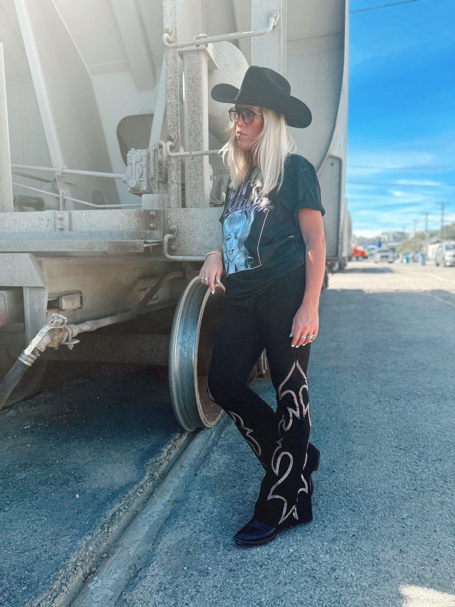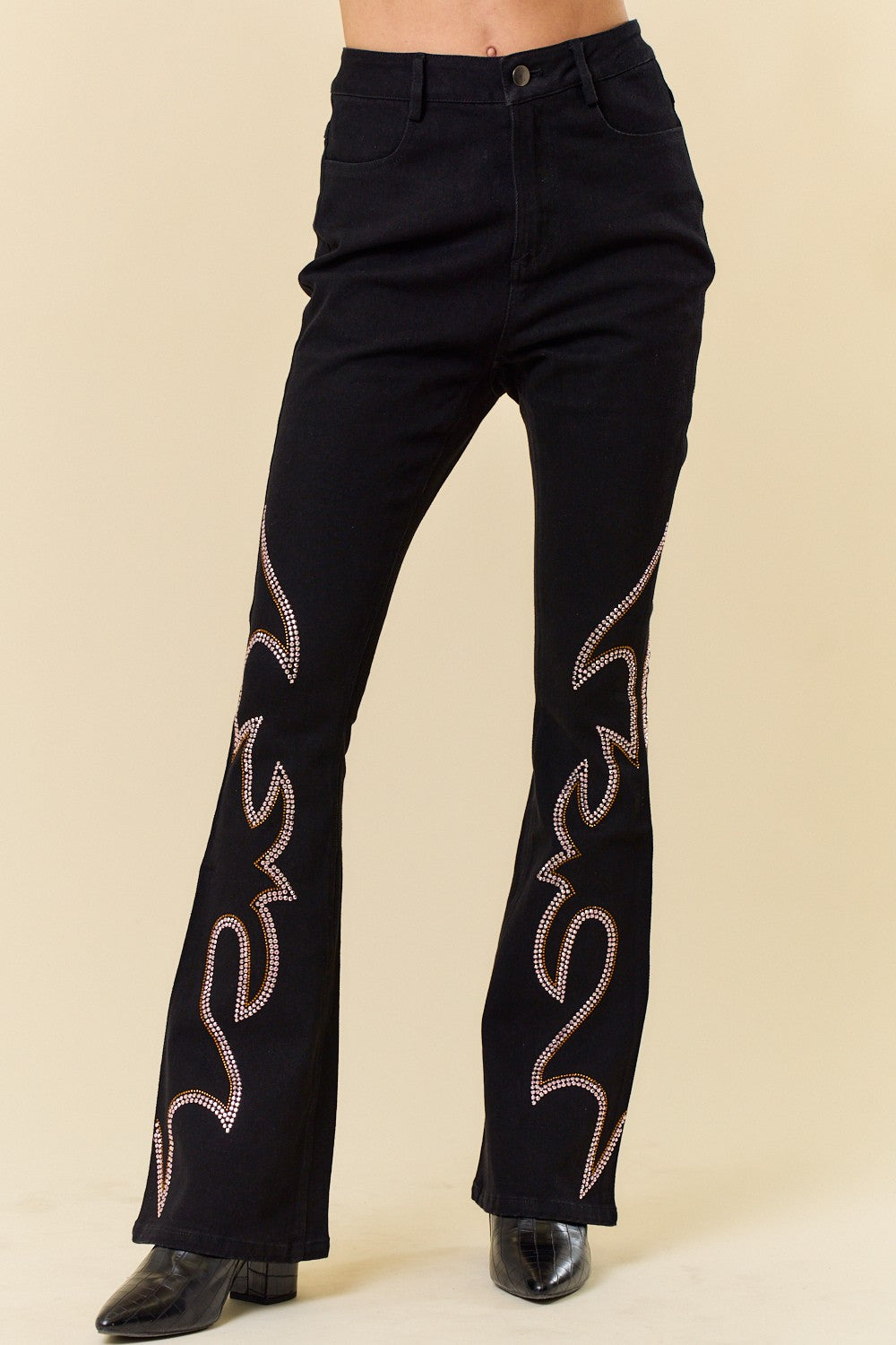These ultra-stretchy, high-waisted bell bottoms are the statement piece of the summer. Finished with a pink and gold embellished western yoke, they’re made for the moments that matter.