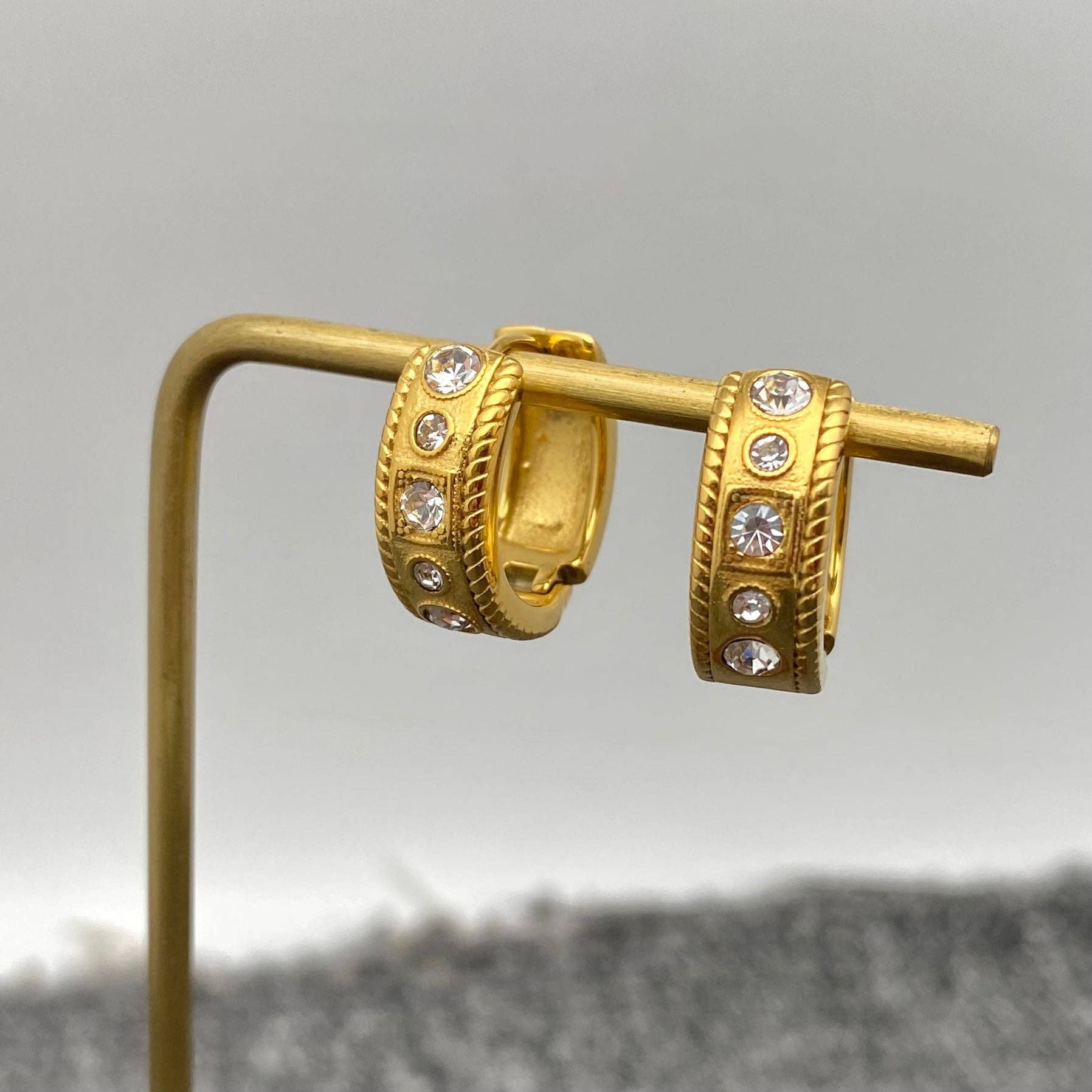 On the go, adventurous summer plans need easy pieces. Cruiser's are your go to 18k gold plated huggie with a little sparkle.