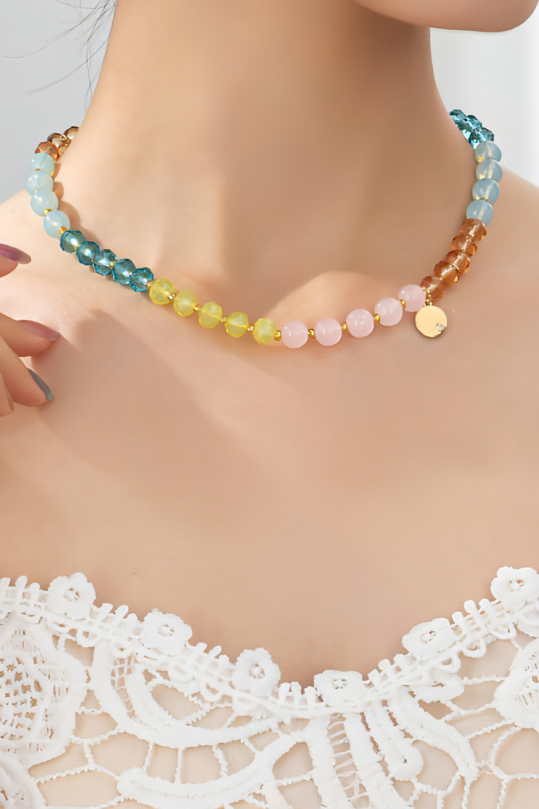 Brighten up your jewelry collection with this colorful natural stone and glass Aqua Beaded Necklace.