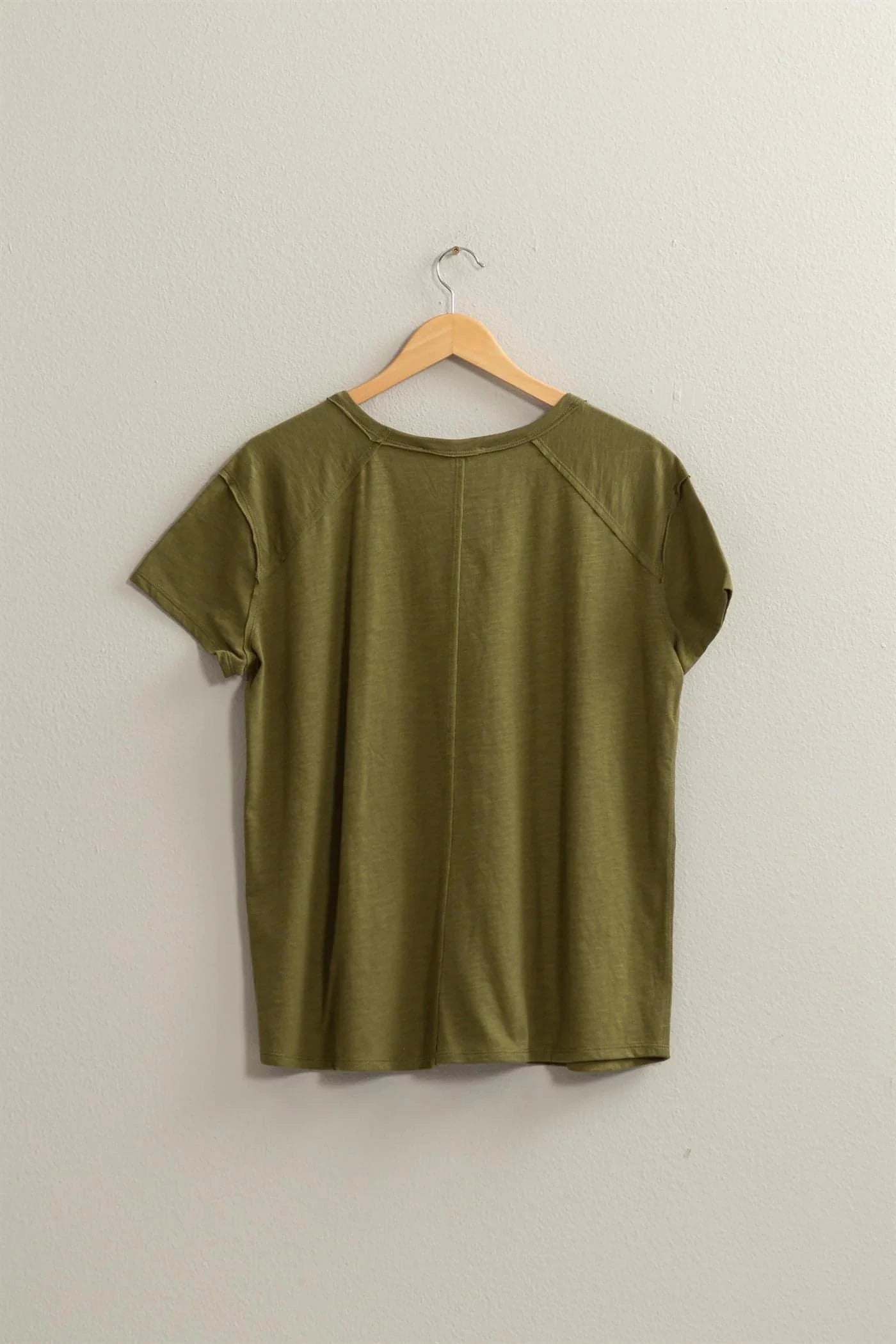 This 100% Cotton tee is great for layering o lounging at home. Pair with denim shorts, jeans, or a skirt! The options are endless.
