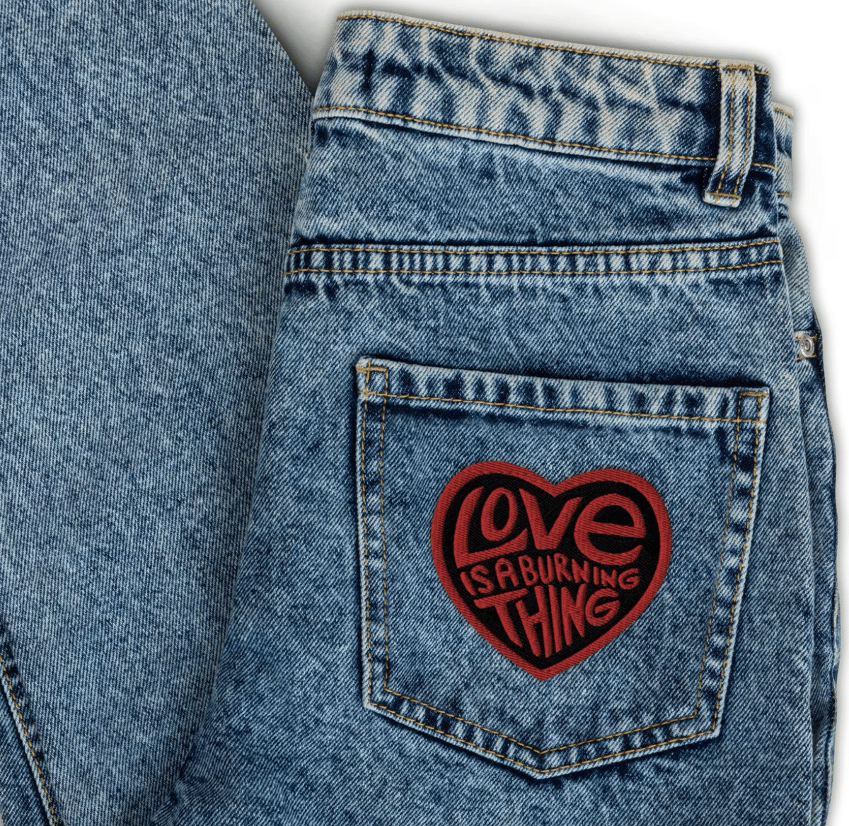 June allegedly came up with the idea for “Ring of Fire” while driving around stewing over the fact that she was drawn to Johnny Cash, despite his dangerous, wild lifestyle. This is a part of our country western patch series!