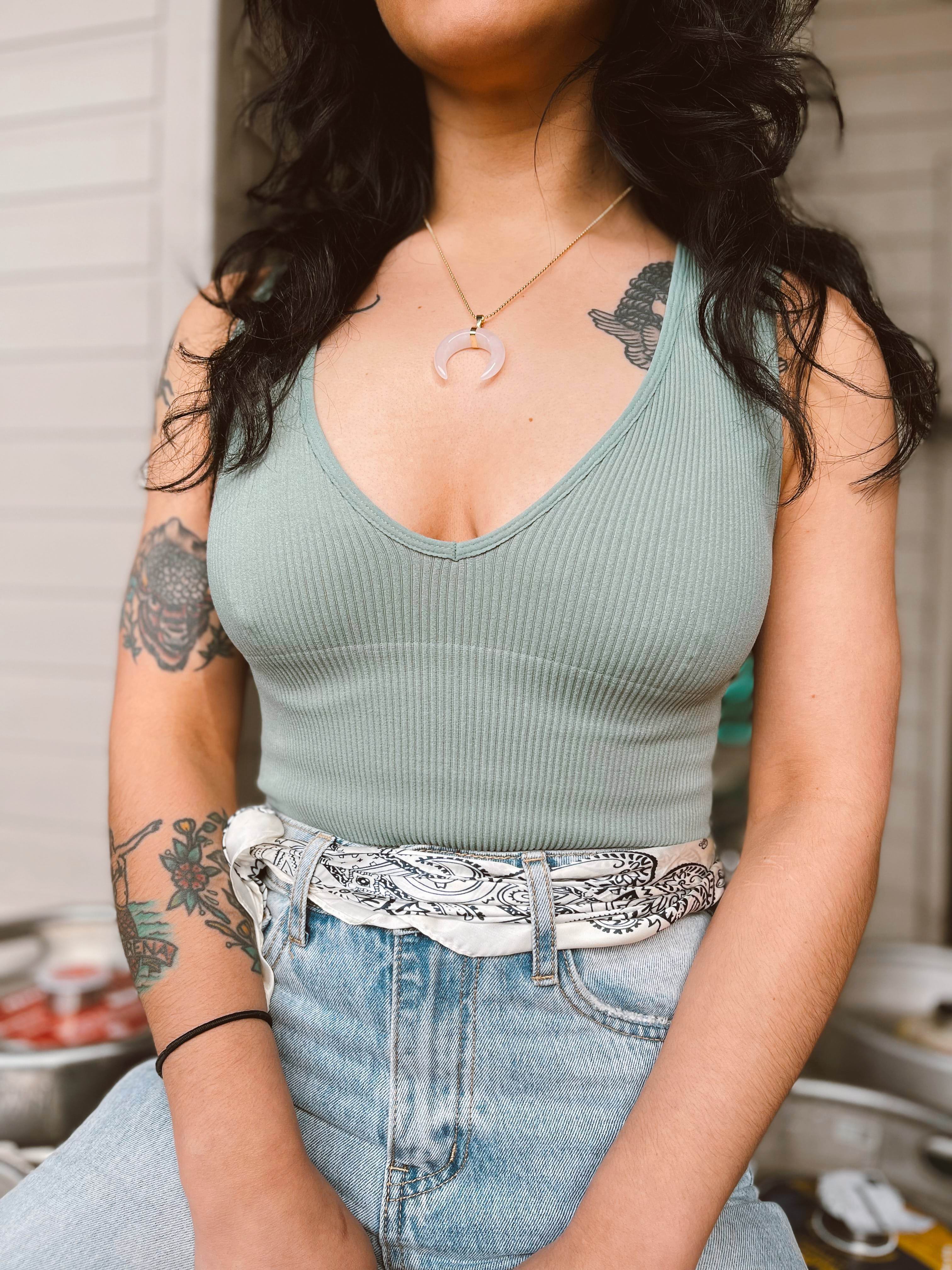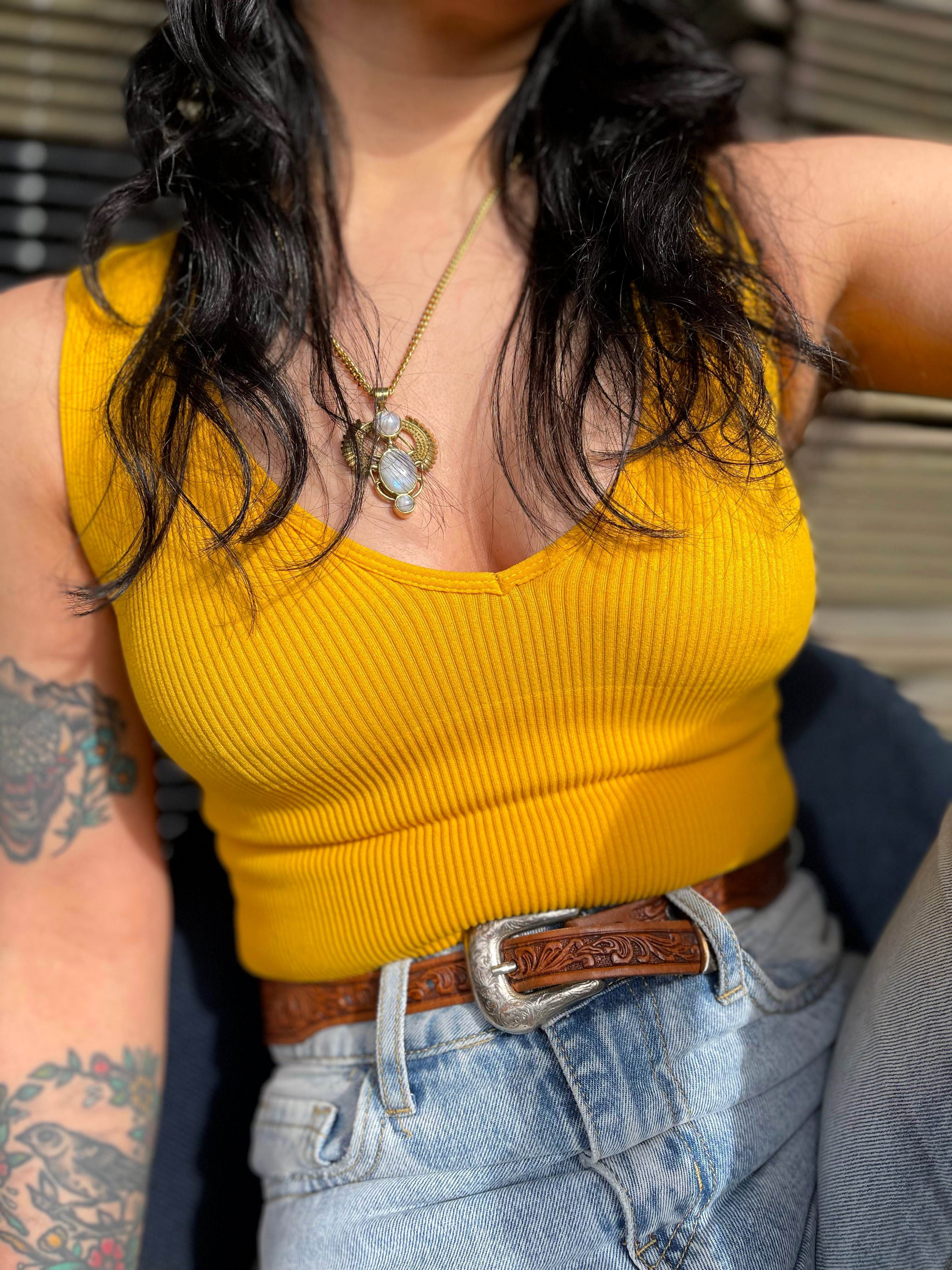 Seamless and fitted with a defined edge. Ideal for layering or as a warm weather tank!