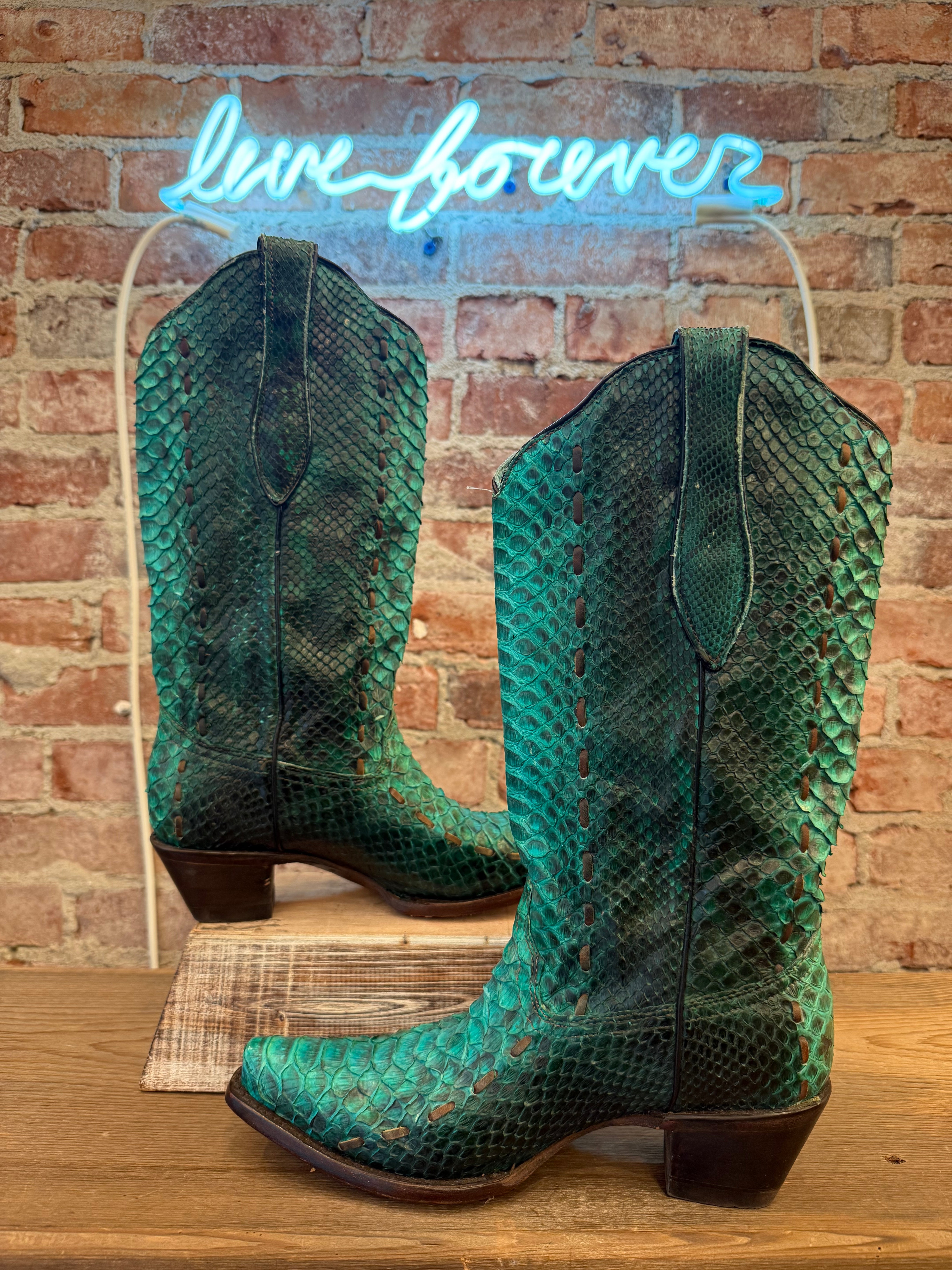 Coral Snake Skin Cowboy Boots Women’s Size 9